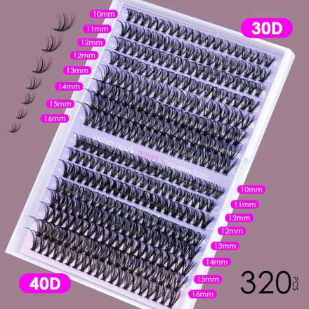 • Complete DIY lash extension kit – 320 pcs cluster lashes (10–16 mm) in 30D/40D, C/D curl, plus bond & seal adhesive, remover and tweezers. Make a salon-style look at home.