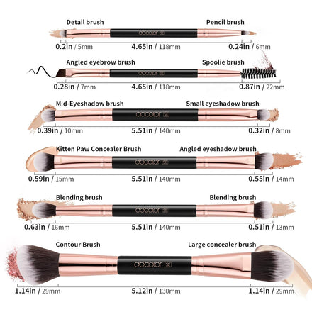 - Those six double-sided eyeshadow and eyebrow brushes feature dual ends to shade, define, blend & smudged eyeshadow & eyebrow makeup to your desired style.