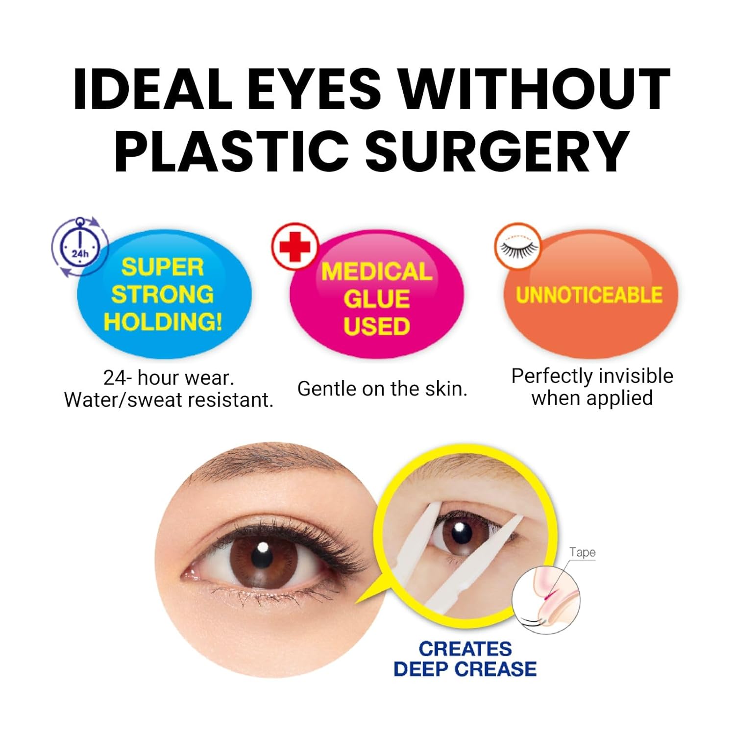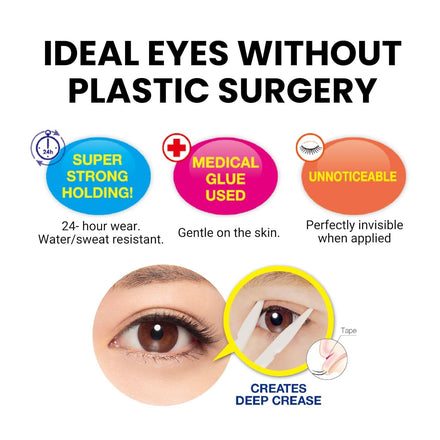 - 【Hard Adhesive Double Eyelid Tape for Long-Lasting Hold】This double eyelid tape features a strong hard adhesive that holds securely even on oily or thick eyelids. It creates a clean, deep crease for all day wear.