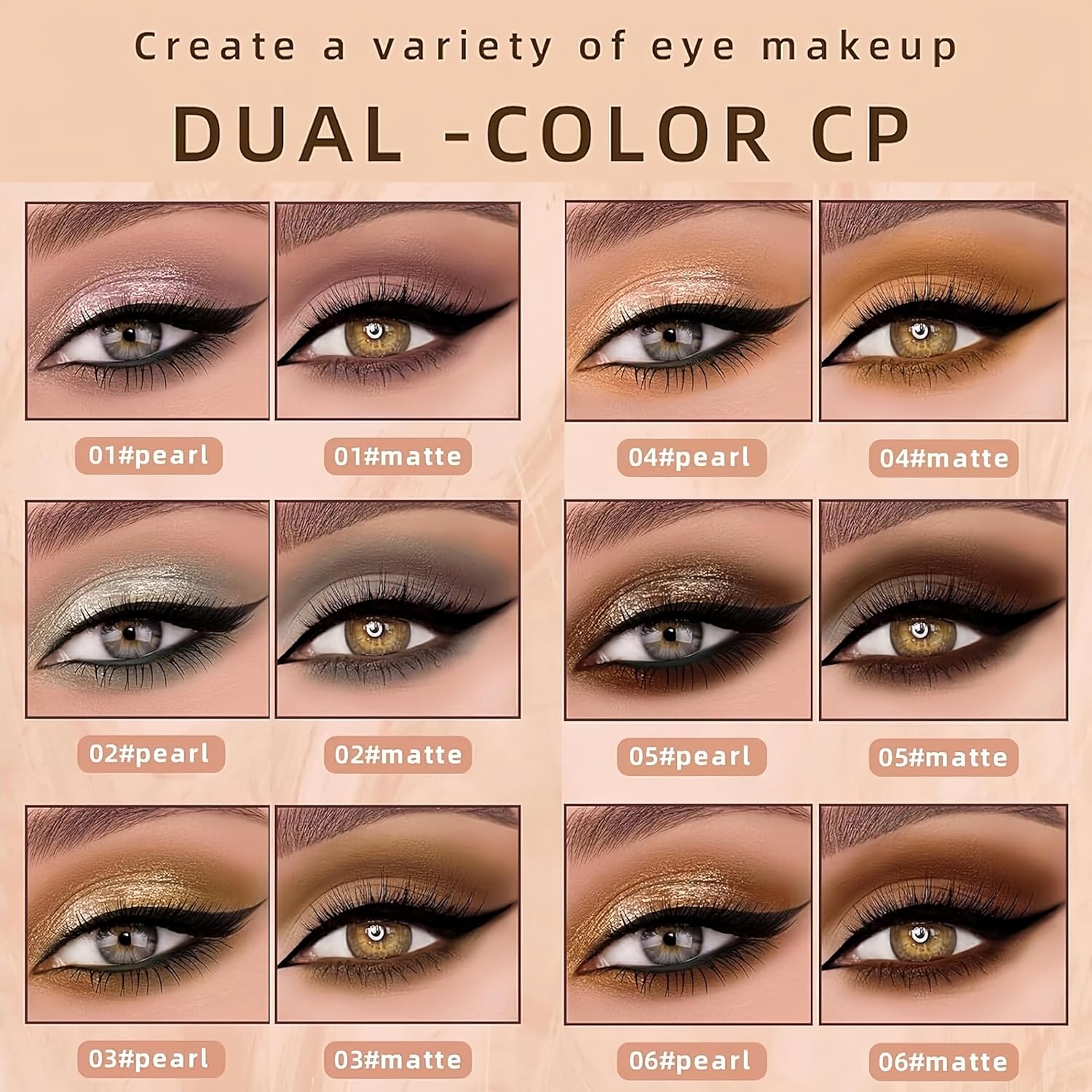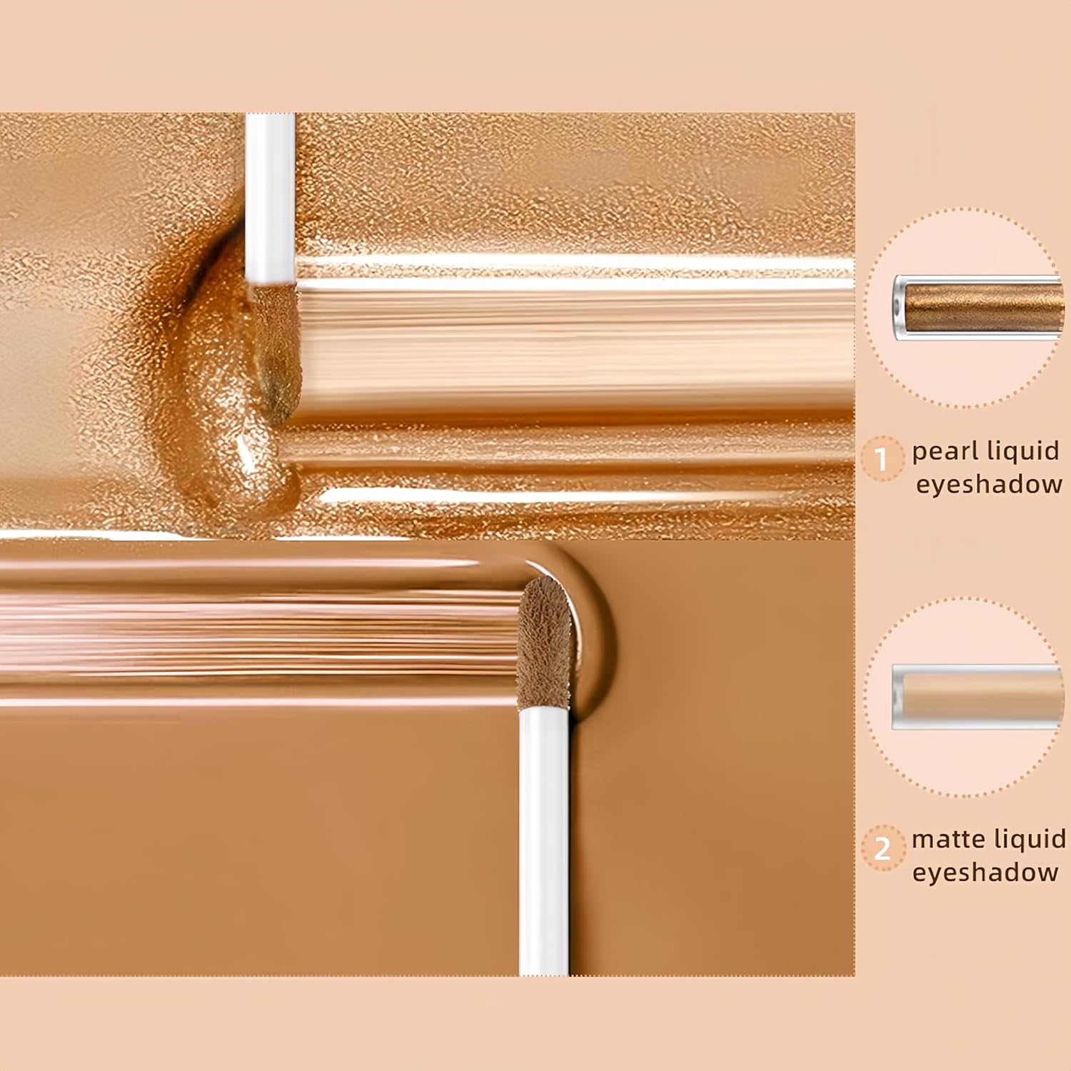 - đăPearl & Matte TextureăA matte creamy liquid texture that allow you to create a smooth, natural matte eye makeup in the blink of an eye. Goes on smoothly like silk without clumping, skipping or smudging. And the glitter texture apply alone or as an eyeshadow topper to highlight and amplify your eye look.