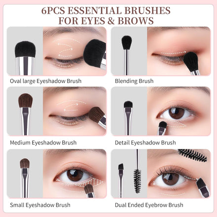• Professional Eyeshadow Brush Set: Including 6pcs eyeshadow brushes, blending brush, duo eyebrow brush and concealer brush. Different shapes and sizes of the bristles give you a variety of eye looks.