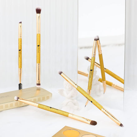 Handle with gold powder, extremely deluxe held in your hand make you like a queen. Eye brushes are made from soft, cruelty-free bristles, recycled aluminum ferrules and eco long-lasting wooden handled. NO shed, feel free to use and enjoy this wonderful creative process.