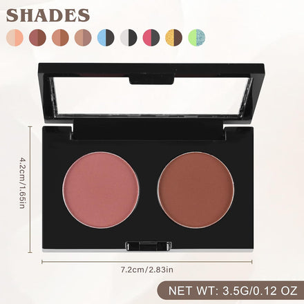- Duo Shades: Two complementary eyeshadow,A selection of classic, versatile shades, including black, white, brown, blue, green, pink, and tan, make it easy to create versatile eye looks, from everyday commutes to natural, full-bodied looks for parties, whether you have fair or dark skin.