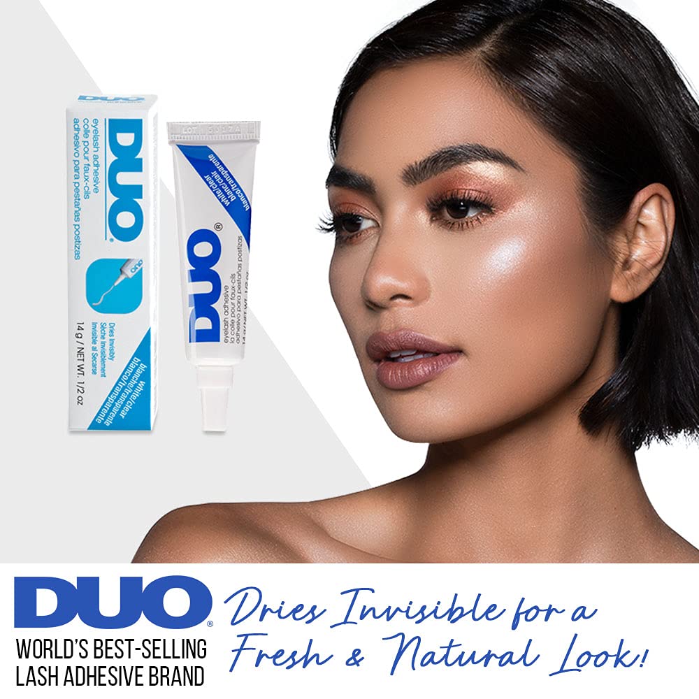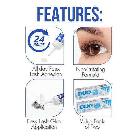 DUO Eyelash Glue – Clear Lash Adhesive for Strip Lashes, Long-Lasting and Waterproof, 0.5 oz, 2 Pack