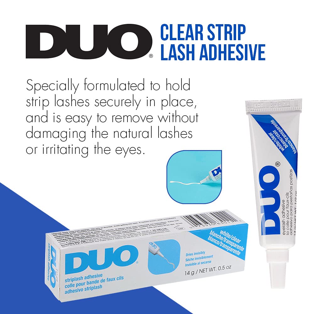 DUO Clear Strip Lash Adhesive is a hypoallergenic and fast-drying adhesive that dries clear and undetectable. Specially formulated to holds strip lashes securely in place, and is easy to remove without damaging the natural lashes or irritating the eyes. Works best in all lash styles.