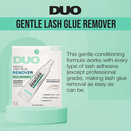 Delicately detach any lash in a flash with DUO Gentle Lash Glue Remover. This gentle conditioning formula works with every type of lash adhesive (except professional grade), making lash glue removal as easy as can be.