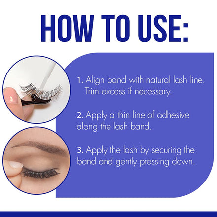• Super Easy To Apply. Not an eyelash expert? No worries, all you need to do is to apply glue on your faux lash line and wait for about 30 seconds. It will help naturally blend in with your eyelashes, leaving absolutely no hint of glue behind!