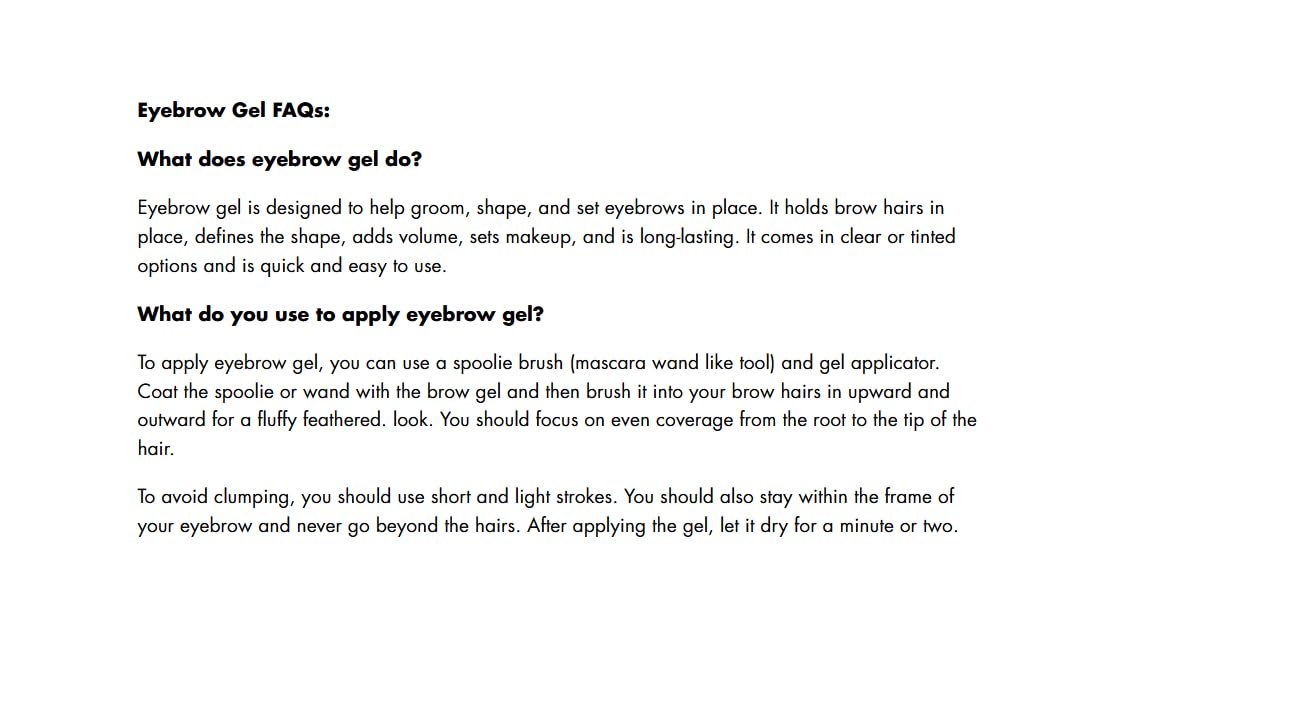 - ULTIMATE EYEBROW GEL: The best eyebrow gel for achieving the fluffy on trend “soap brows." This extreme-hold brow gel instantly lifts, sculpts & grooms every brow hair into place with a clear, natural finish that looks good on all skin tones & brow colors