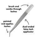 • CREATES A NATURAL LOOK: Features curved tweezers on one end to delicately grip and precisely lay your lashes on your lash line; on the other end is a brush to gently comb through and blend your faux and real lashes together for a natural look.