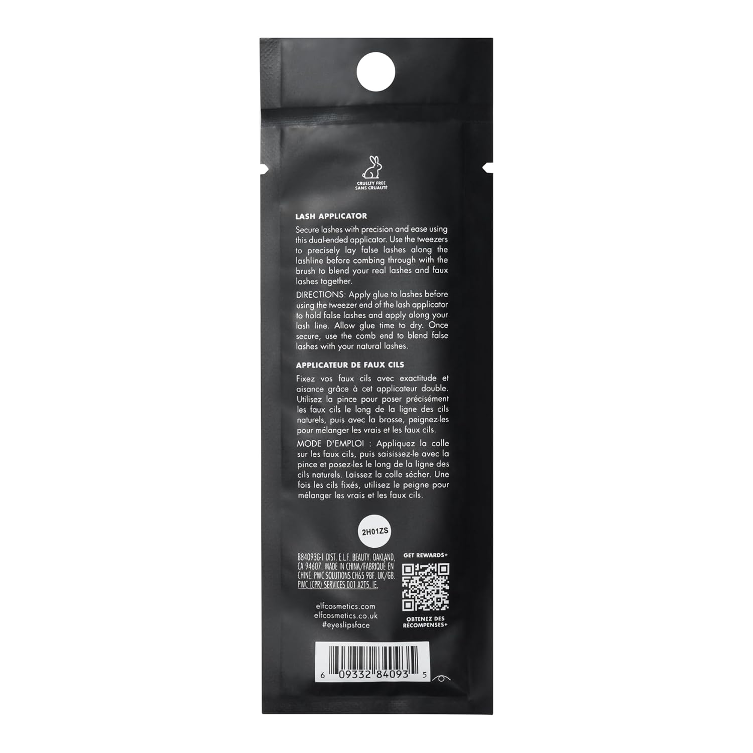 What it is: Achieve flawless lashes effortlessly with this dual-ended lash applicator. Designed for precision and ease, it features curved tweezers to gently grip and apply false lashes without damage and a comb to blend faux and natural lashes seamlessly. Why you'll love it: The unique handle ensures controlled, expert application, making it ideal for both strip and individual lashes. Perfect for beginners and pros alike, this tool simplifies lash application for a polished, natural look every time All e.l.f. professional makeup tools have been designed and tested by our professional team of makeup artists. Each applicator been ergonomically designed to fit perfectly into your hand and facilitate a flawless finish with every application Ingredients may change or vary from time to time. Please refer to the packaging of the product received for the list of ingredients in your particular product. Proud to be 100% Vegan, Cruelty-Free and Leaping Bunny Certified. Because kindness is chic.