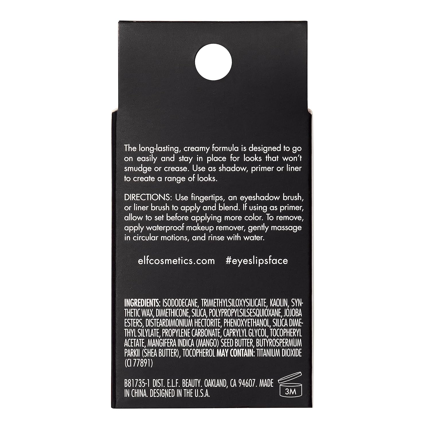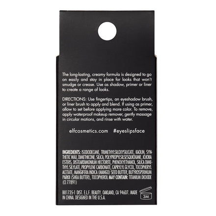 What is it: A 3-in-1 cream eyeshadow, primer, and liner that delivers crease-resistant color and stay-put power. Why you'll love it: Multi-use product triples as an eyeshadow, primer, and liner Easy-to-apply, creamy formula Delivers blendable, long-lasting color Smudge- and crease-resistant Great for: All skin types The ultimate triple threat: This 3-in-1 creamy eyeshadow, primer, and eyeliner delivers richly pigmented color that won't budge, smudge, or crease. The velvety, buildable eye formula easily swipes over your lids with your fingertips, brush, or liner brush. It's never been easier to create a range of looks and prime your lids to build the color you want and lock in your look. Available in 8 long-lasting colors that range from essential to vibrant. All e.l.f. products are free from phthalates, parabens, nonylphenol ethoxylates, triclosan and triclocarban. Proud to be 100% vegan, cruelty-free, and Leaping Bunny Certified. Because kindness is chic.
