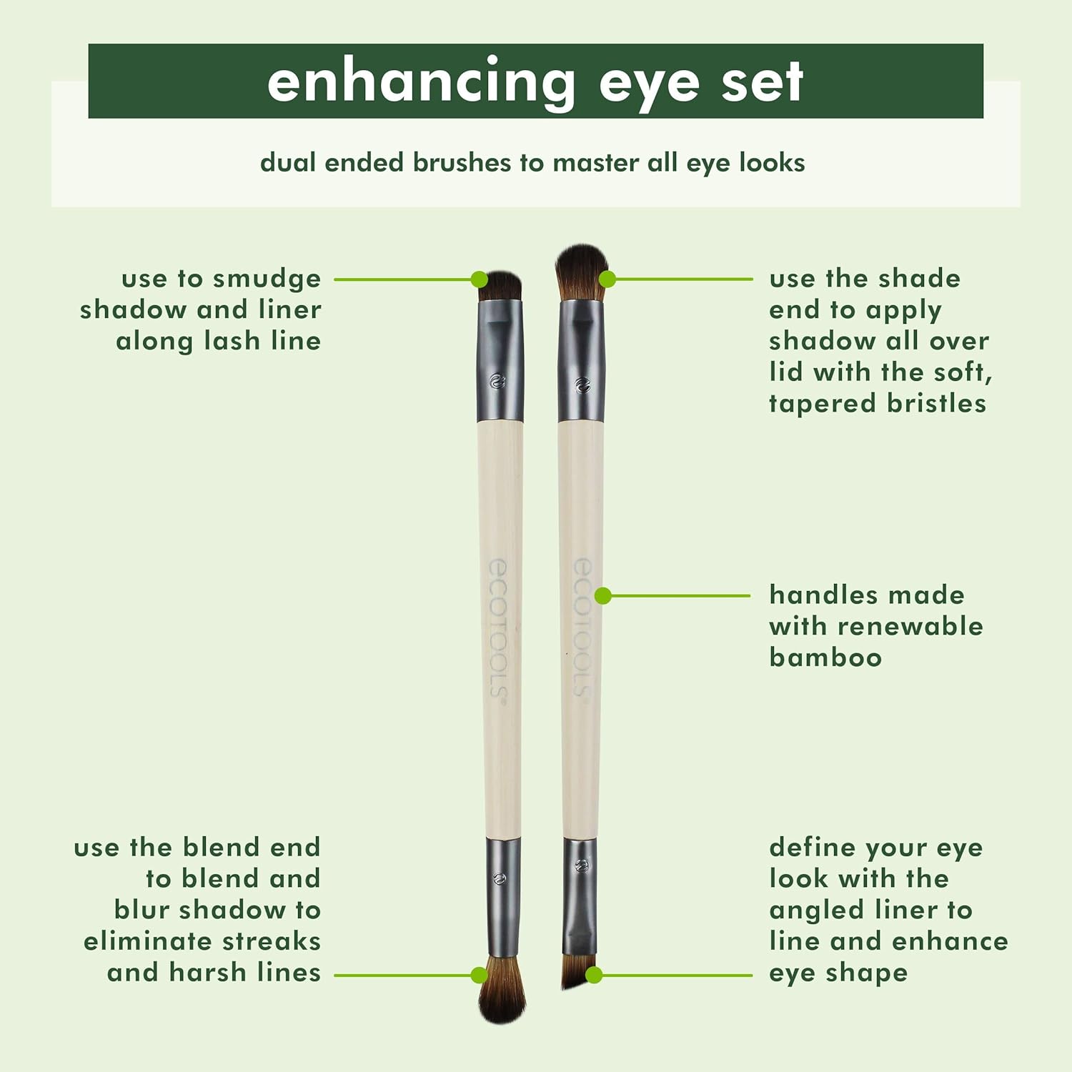 - EcoTools Enhancing Eye Makeup Brush Set creates the perfect eyeshadow look with: (1) Shade + Define Eye Brush Duo and (1) Smudge + Blend Eye Brush Duo – ideal for eye makeup application