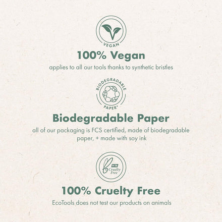 - Packaged in FSC-certified compostable paper, these brushes are vegan, PETA-certified cruelty-free, and part of EcoTools’ sustainable beauty tools