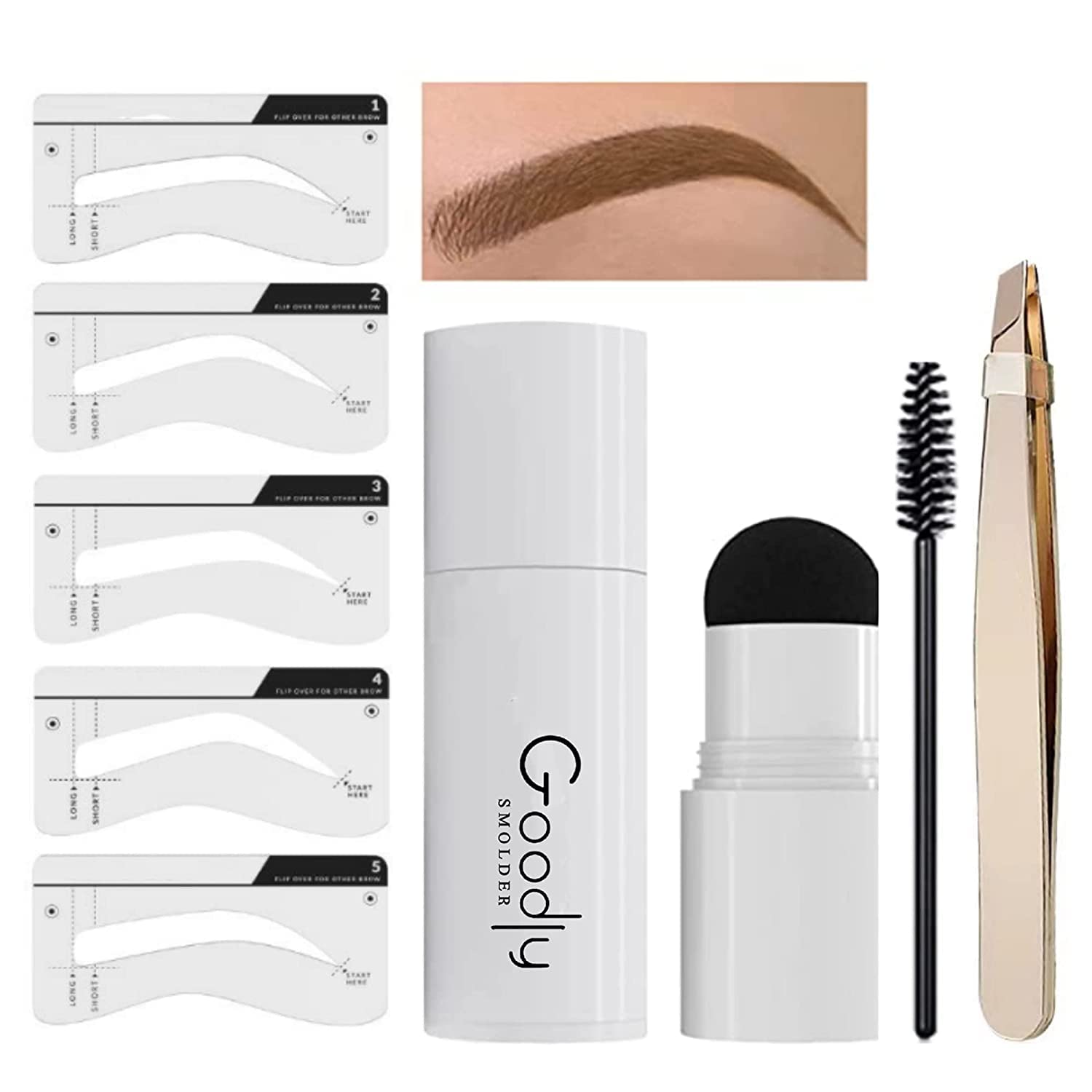 • EFFORTLESS & EASY - Create flawless eyebrows in seconds! Each eyebrow kit includes 1 Medium Brown stamp, 5 eyebrow stencils, a gold tweezer, 1 brow brush, and a small makeup bag perfect for travel.