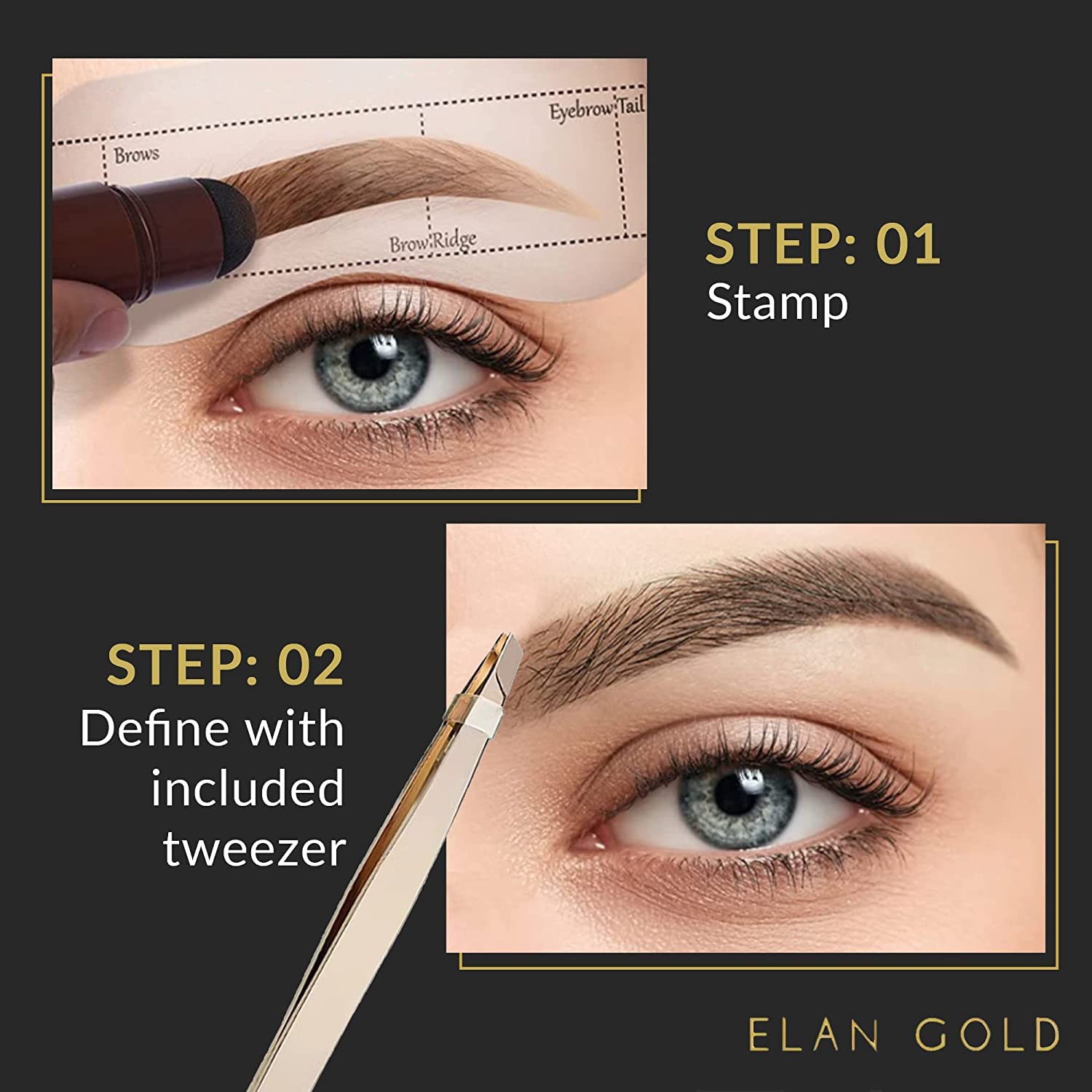 EGLD GOODLY by ELAN Gold Eyebrow Stamp Stencil Kit w/ Bonus Eyebrow Tweezer Included | Perfect for One Step Eyebrow Shaping | Waterproof and Long Lasting Finish, Nearly Black