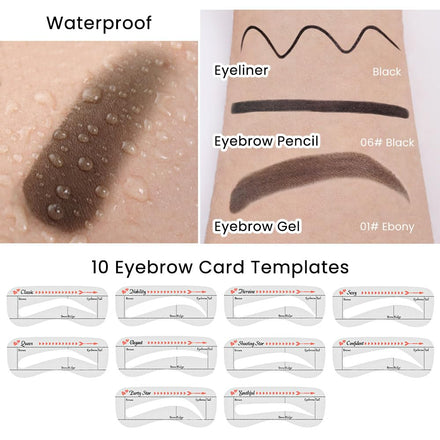 - ❤【Eyebrow Pencil Eyeliner Stencil Kit】Included Eyebrow Pencil, Liquid Eyeliner, Eyebrow Pomade, 10 Eyebrow Stencils and Dual-ended Eyebrow Brush.Instantly outlines, defines & fills in your brows no matter how much eyebrow hair you have,3 minute to create flawless, symmetrical brow!