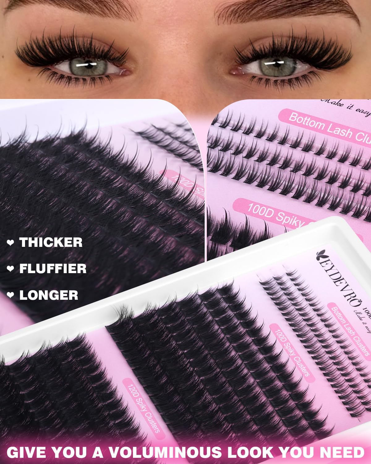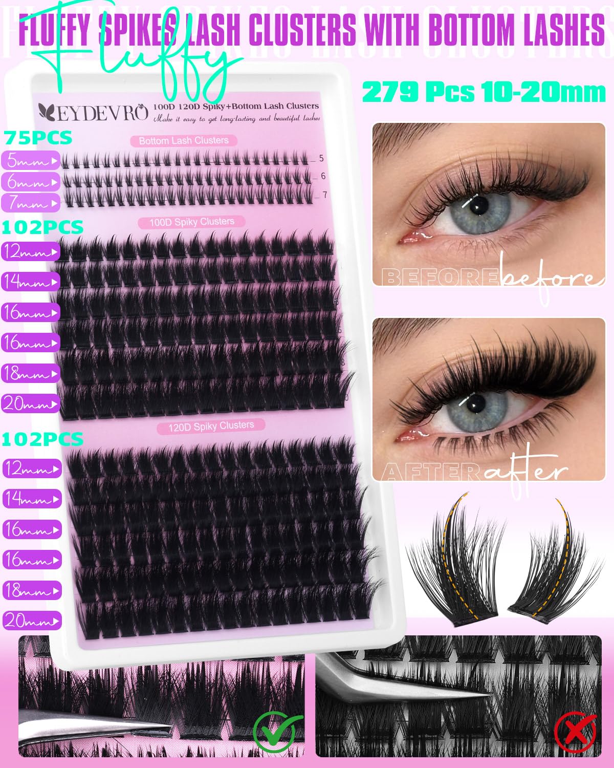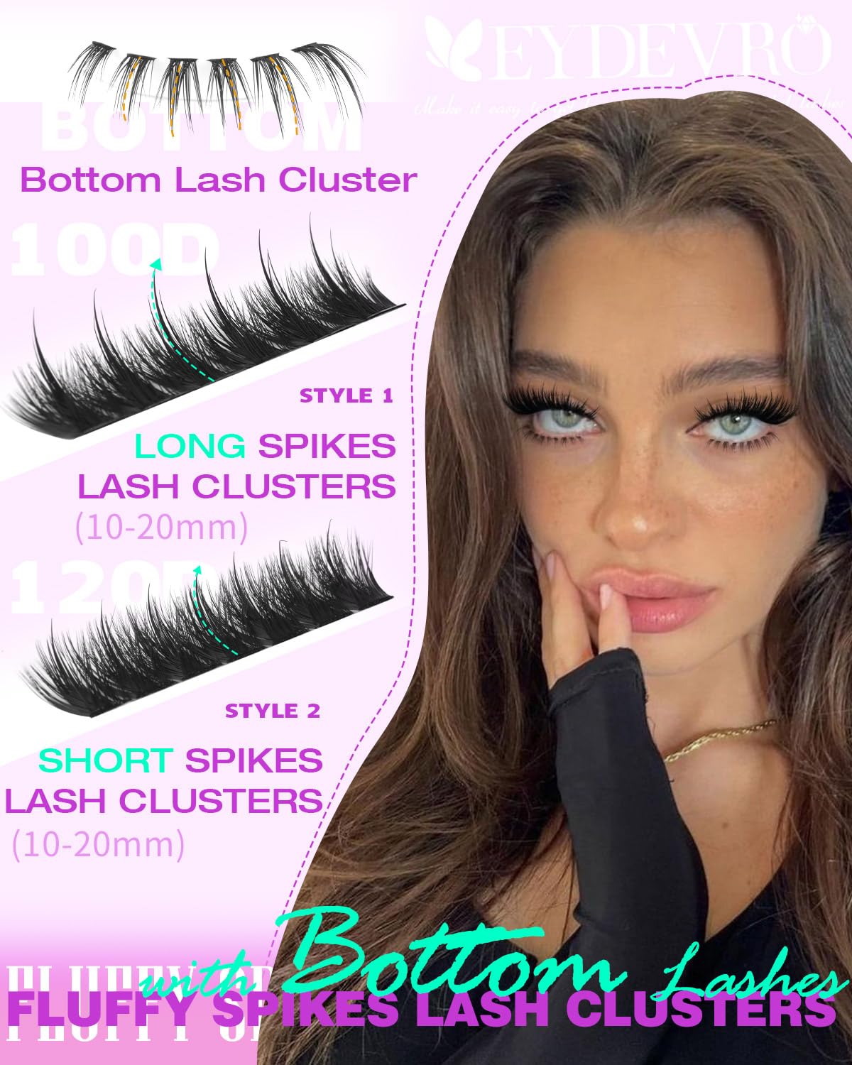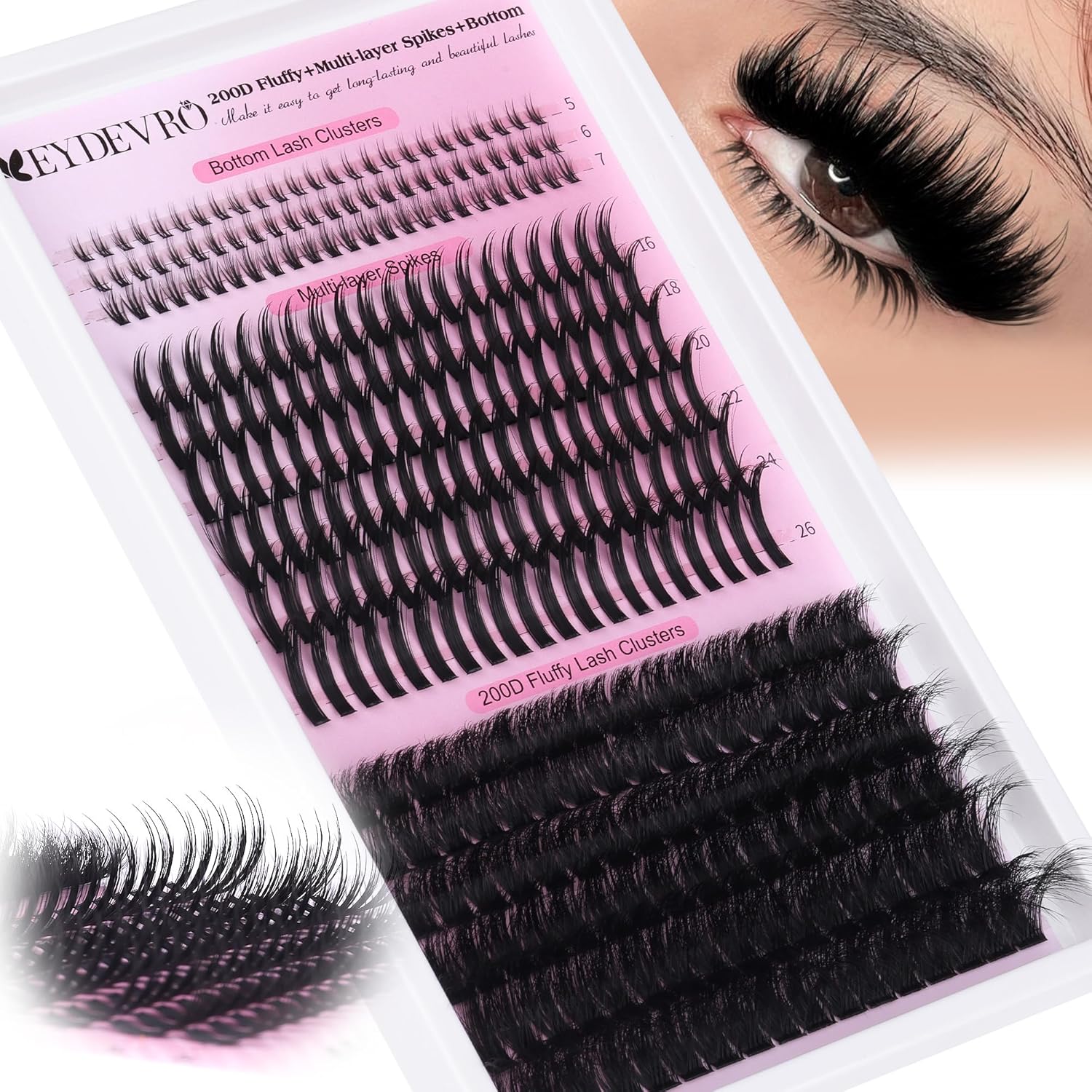 - EYDEVRO Customer Service: If you have any questions about our Volume Fluffy Spike Lash Clusters with Bottom Lashes, our EYDEVRO team is here to help; We provide luxury lash clusters and reliable shopping experience; Love your lashes or let us make it right