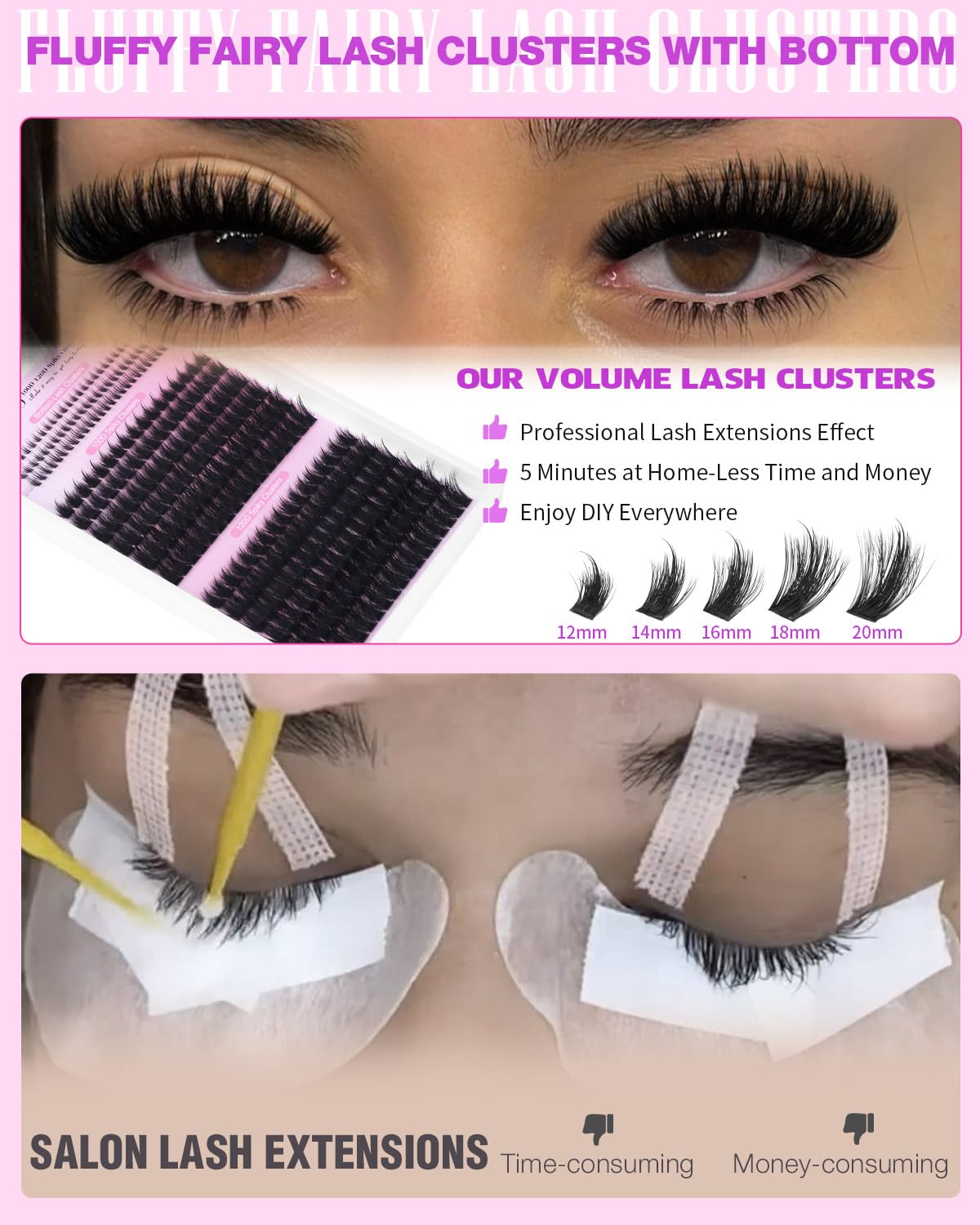 - Come with Bottom Lash Clusters: Complete your lash game with matching bottom lash clusters! These delicate pieces enhance your lower lash line for a balanced, stunning effect; No more unfinished looks-get fully framed, mesmerizing eyes instantly