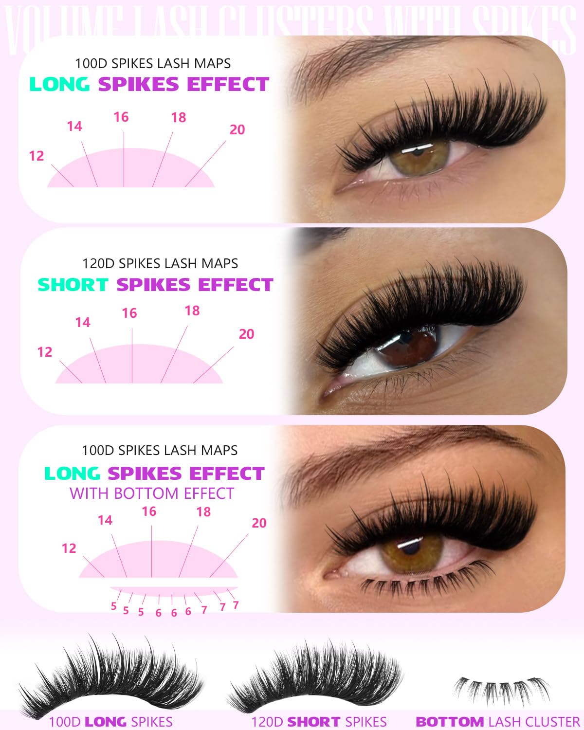 - Fluffy Lash Clusters with Spikes: Meet our fluffy spiky lash clusters! They add a bold, textured look that’s both dramatic and eye-catching; Perfect for making your eyes pop with attitude; You’ll love the edgy yet fluffy appeal