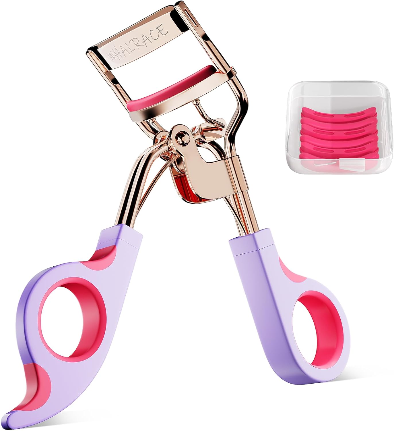 - ✅Stylish and Ergonomic Design: The dual-color scissor-shaped handle design not only adds a touch of elegance but also conforms to ergonomic principles. Enchinador de pestañas fits comfortably in your hand, providing a firm grip and effortless control during use. Besides, the bright color definitely help to NOT lose them, it’s easy to locate in your big makeup drawer!