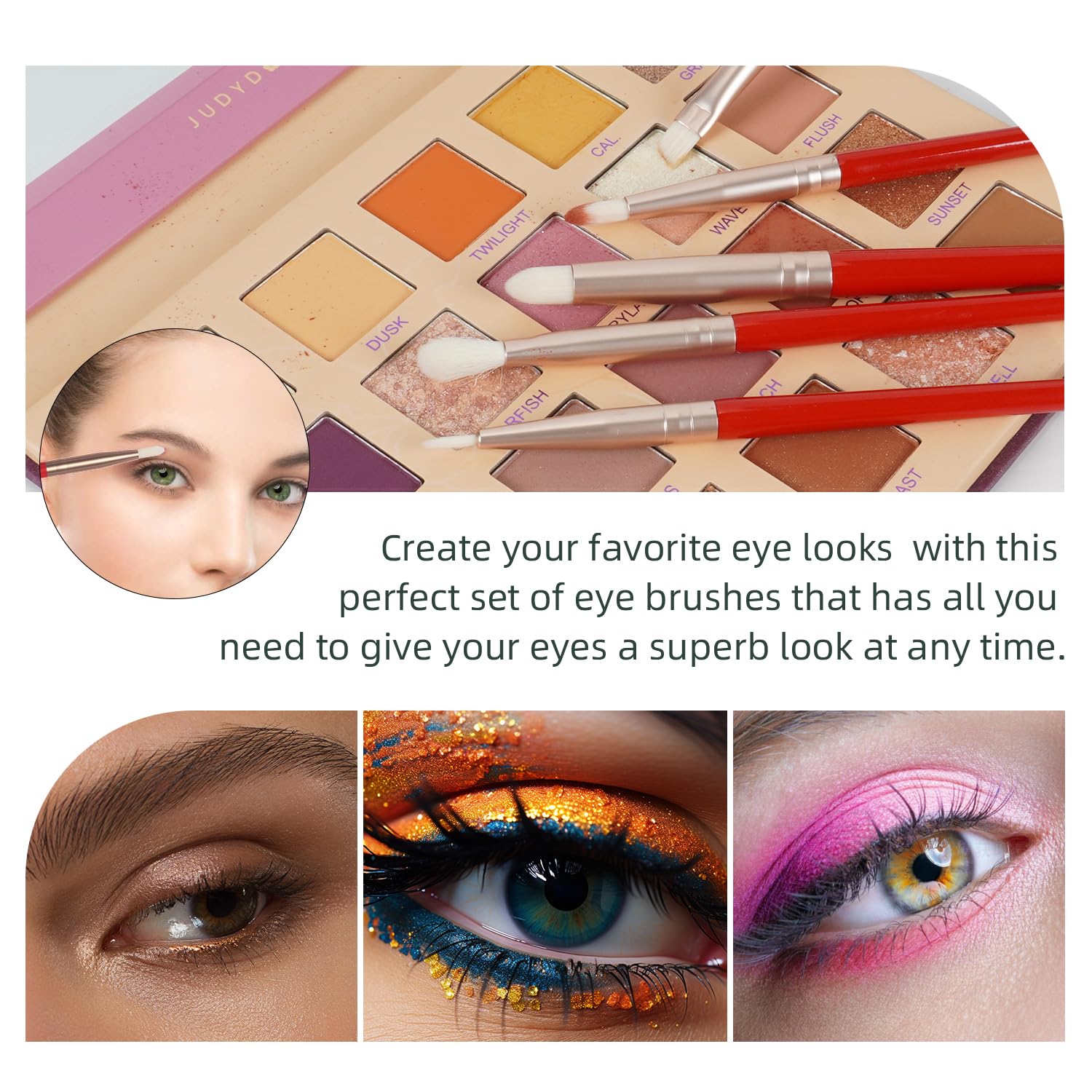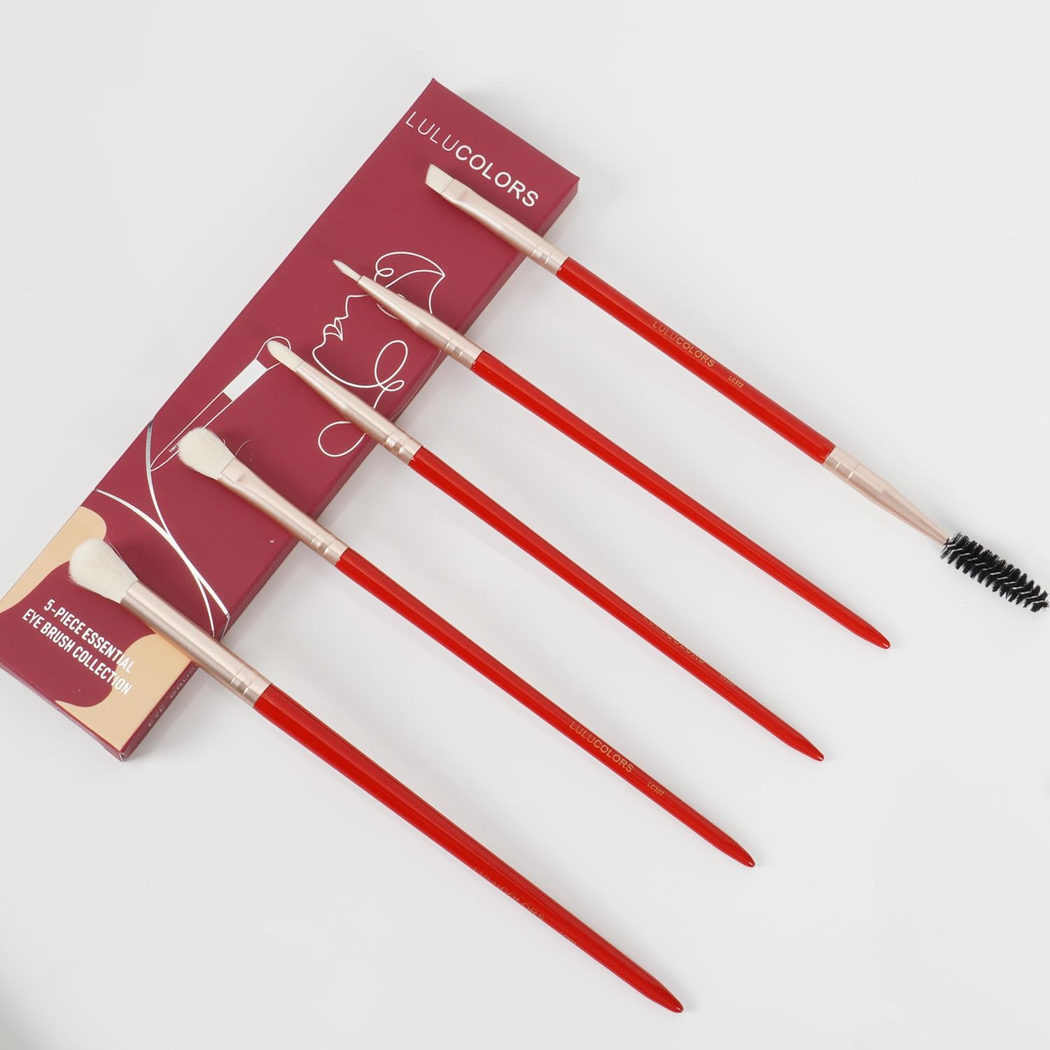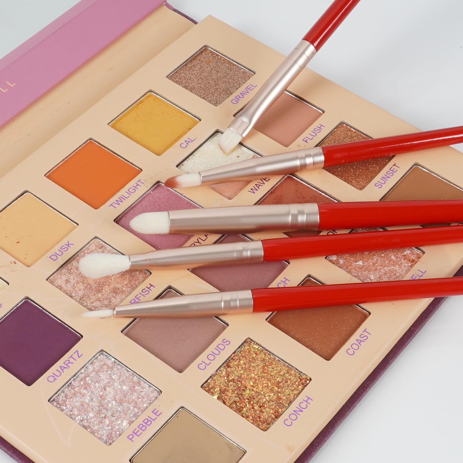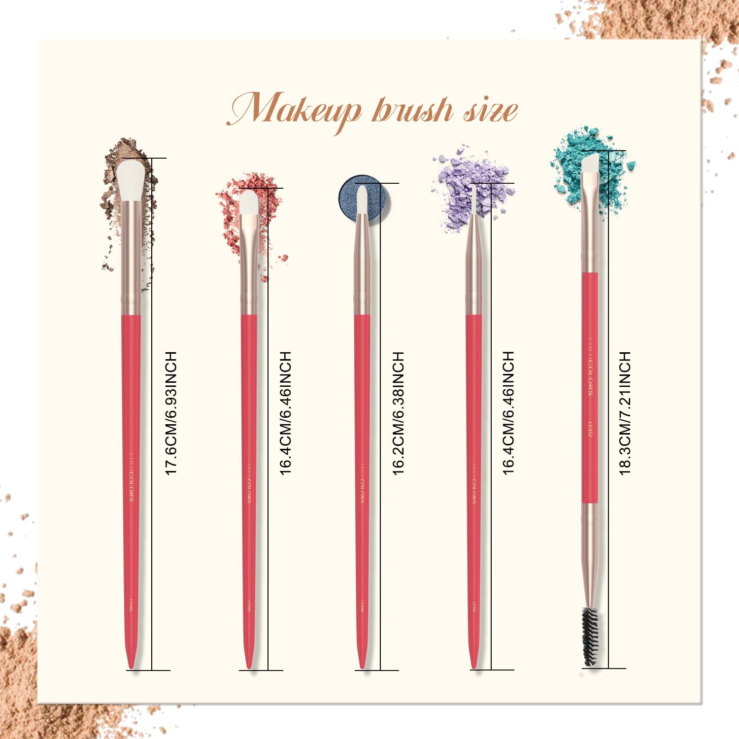 Eye Makeup Brush Set, 5 pcs Soft Bristles for Eyeshadow, Eyebrow, Eyeliner, Blending, and Concealing application, Cruetly free makeup brush (red)