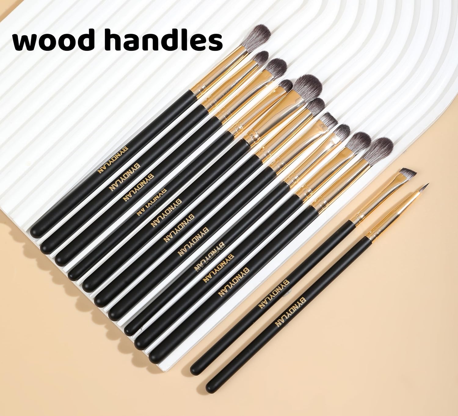 - Champagne GOLD Ferrule: The thick ferrules of our eye makeup brush set are very difficult to fall off. The combination of champagne gold aluminum ferrule, soft hair, and wood handle provides a pleasant silky experience.