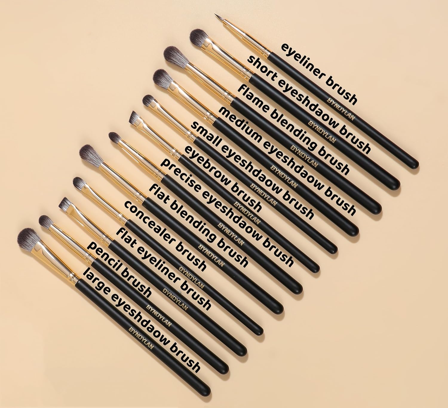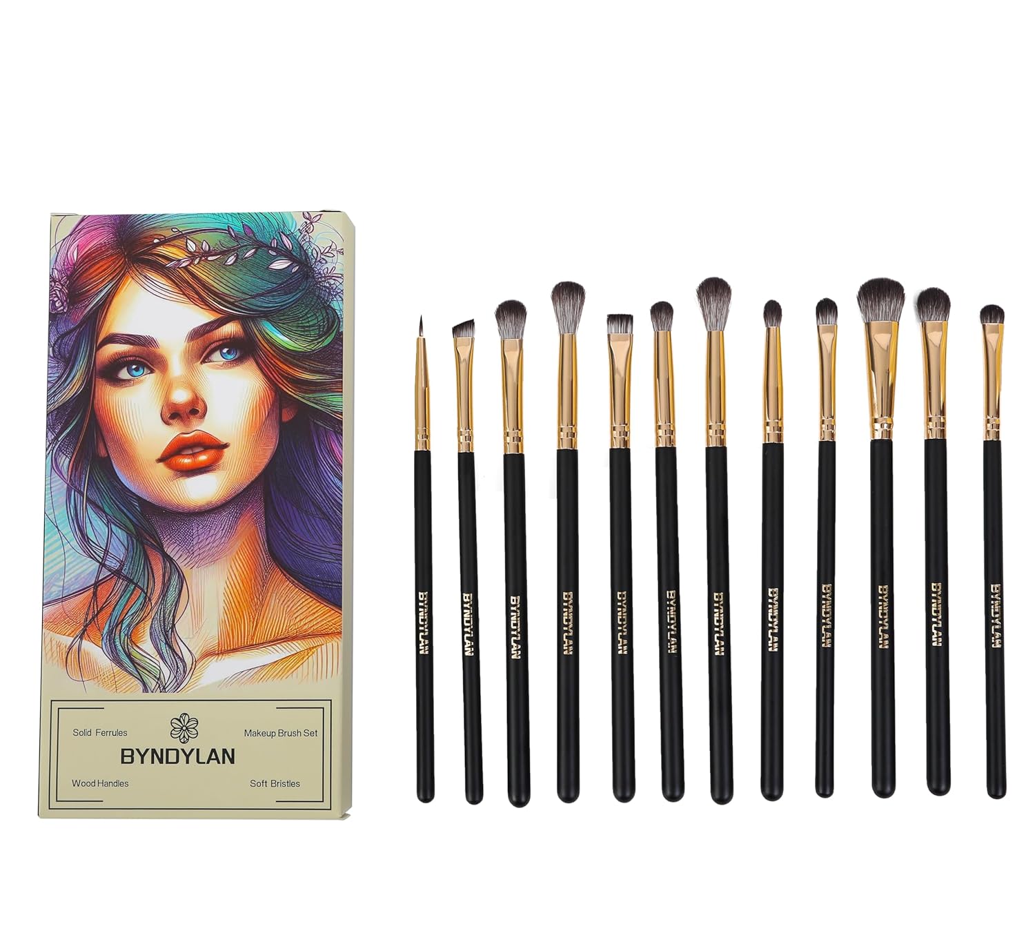 - Professional Eye Makeup Brushes Variety: Our 12-piece BYNDYLAN makeup brush set includes eyeshadow brushes, blending brushes, eyebrow brushes, eyeliner, concealer and pencil brush. Different shapes and sizes of the bristles blend beautifully and allow you to create a variety of eye makeup .
