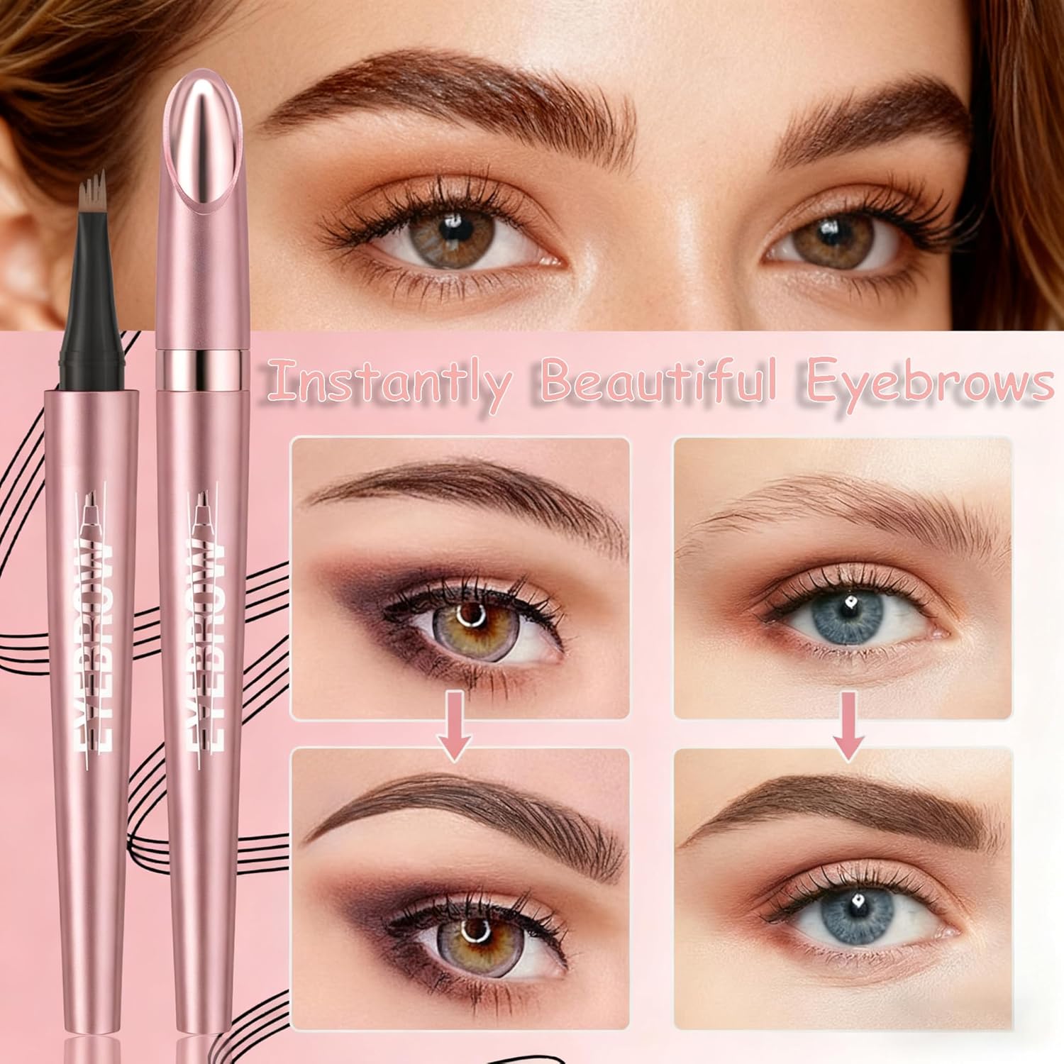 - 【 4-Tip Microblade Eyebrow Pen】:Experience effortless application with our innovative four-point eyebrow pen tip, designed for ultra-precise shaping. The micro-forked applicator delivers unmatched accuracy, ensuring clean and defined brows with every stroke. This microblading eyebrow pencil creates the perfect hair-like effect for a natural finish.