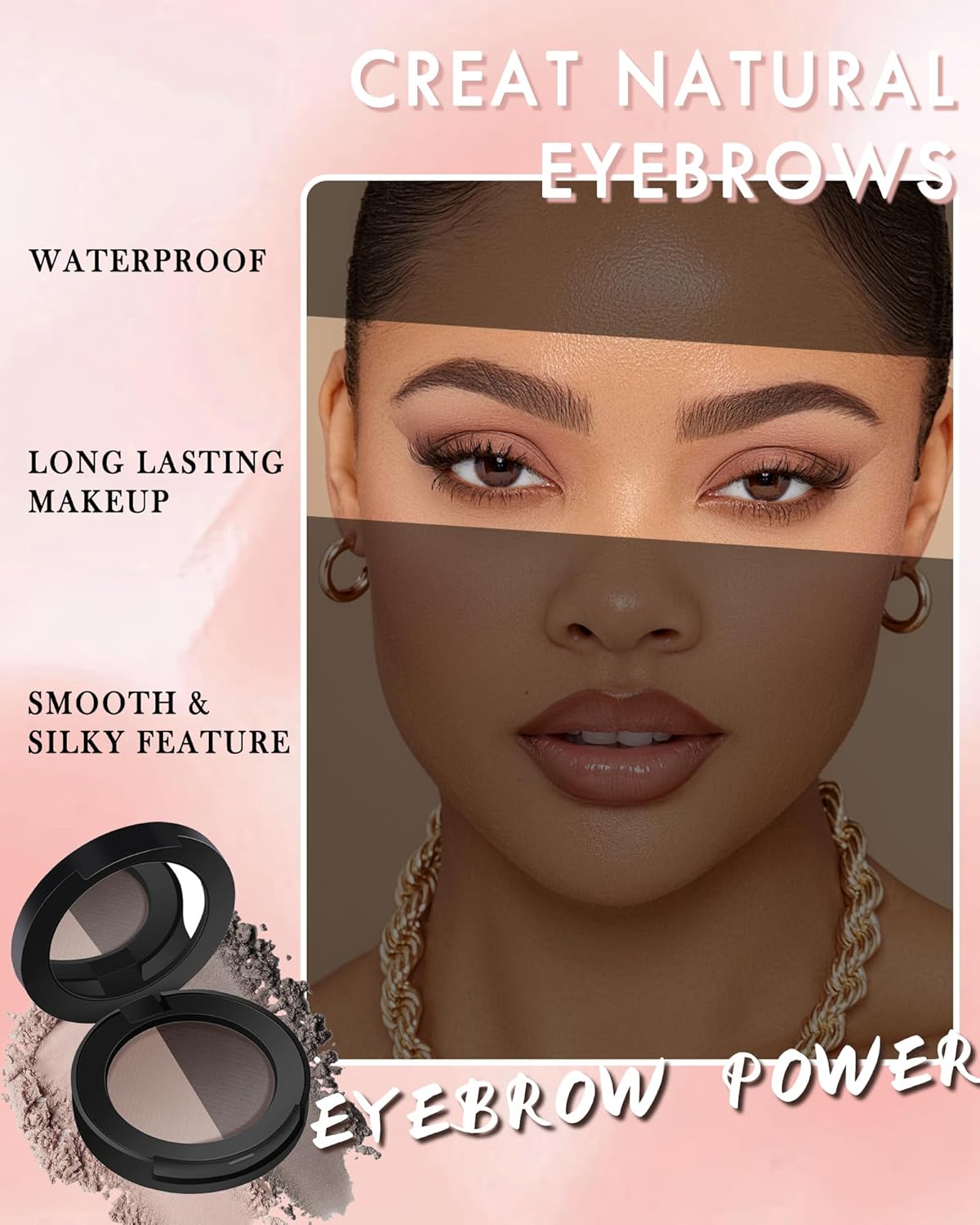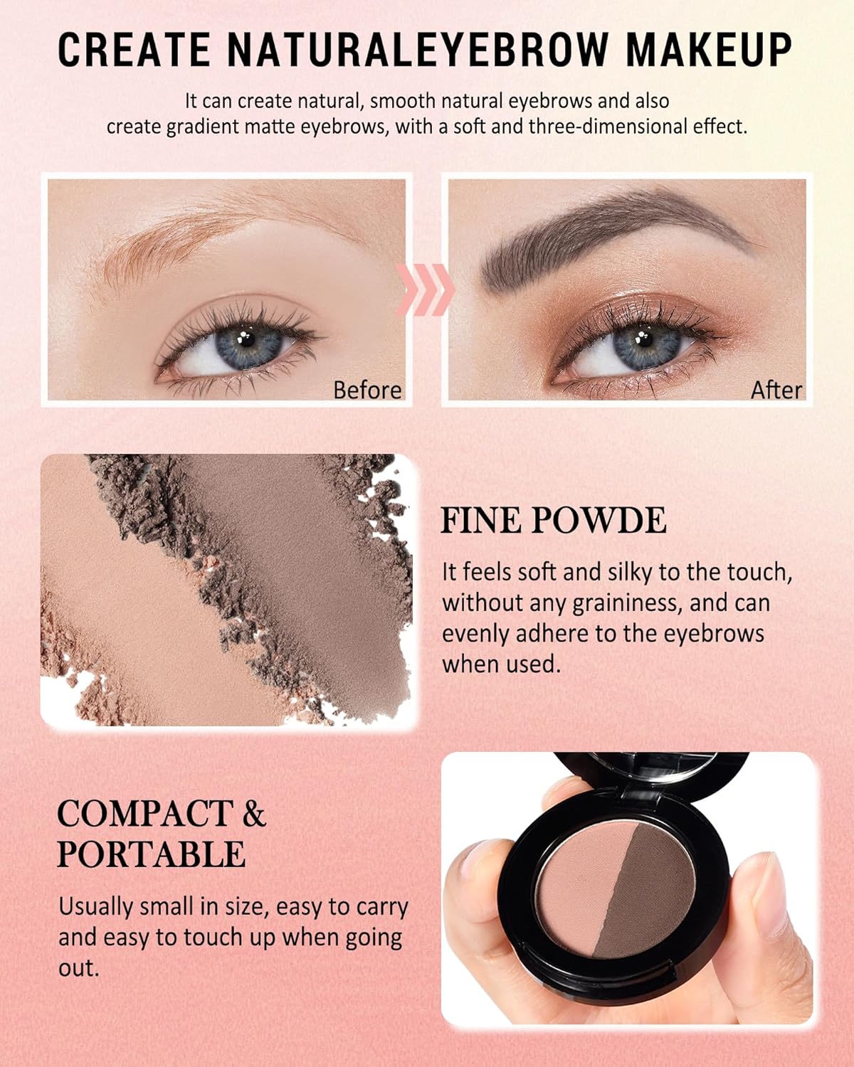 Eyebrow Powder Kit, Duo Long Lasting Waterproof 4 series Tint Eye Brow Filler, Enhance & Define Brows, Eye Makeup Contour Palette Set with Mirror Brush Razor, Mother's Day Gift for Women Girl, This Travel-Friendly Kit is Perfect for Women on the go to Create the Perfect Brow-Shaped Eye Makeup Product Description: Net Weight: 0.8g Shelf Life: 3 years Feature: 1.This eyebrow powder palette adopts delicate micro-particle technology with a natural transition of color, easily simulating the texture of real eyebrows, whether it's filling in sparse areas or outlining a clear brow shape, it can achieve precise shaping, making your eyebrows look thicker and more natural. 2. The waterproof formula effectively resists sweat and oil, keeping your eyebrow makeup clear and non-removal all day long, even in humid or hot environments. Whether it's an outdoor event or an indoor party, you'll be able to show off your flawless brows with confidence. 3. Not just limited to brows, this powder palette can also be used for eye makeup and facial contouring. With its soft matte shades, it can be swept for a natural eye shadow effect or used as a nose shadow to deepen your face, making it a versatile palette that inspires endless creative makeup possibilities. Tips: 1. Keep away from children and fire. 2. Store in a cool place to avoid direct sun. 3. This product is for external use only. 4. Please avoid contact with eyes. In case of contact, rinse immediately with water. 5. If you feel uncomfortable during use, please stop using it immediately. 6. Due to monitor, illumination, environment and other factors, it will cause some color difference between the picture and the actual object.
