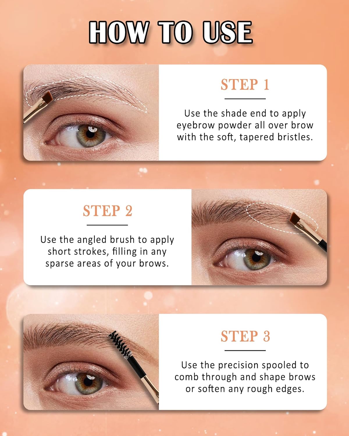 - What You'll Get - This brow powder with built-in mirror, you will get a dual color brow powder palette, along with a mini dual-ended brow brush, a standard model dual-ended brow brush and an eyebrow razor, which is very affordable. This eyebrow makeup toolkit will help you easily manage a natural and three-dimensional eyebrow makeup style.