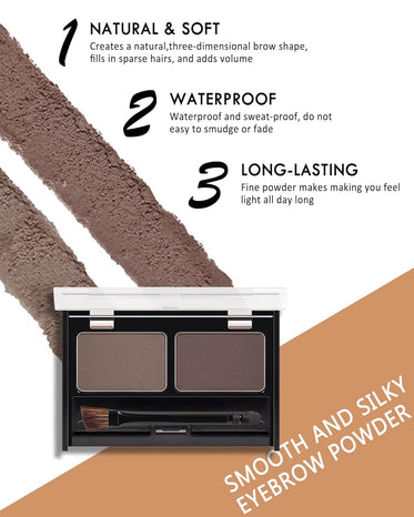 - Long-Lasting & Waterproof - This professional matte soft brow palette features waterproof, long lasting, smudge-proof and sweat-proof. With a long-lasting formula, this eyebrow powder waterproof keeps eyebrows in place for a long time and is not easy to come off under high temperature and humidity. As a result, the waterproof brow powder adheres lightly to your skin or brows, giving you a long-lasting, weightless feel that will keep you looking great with confidence all day long.