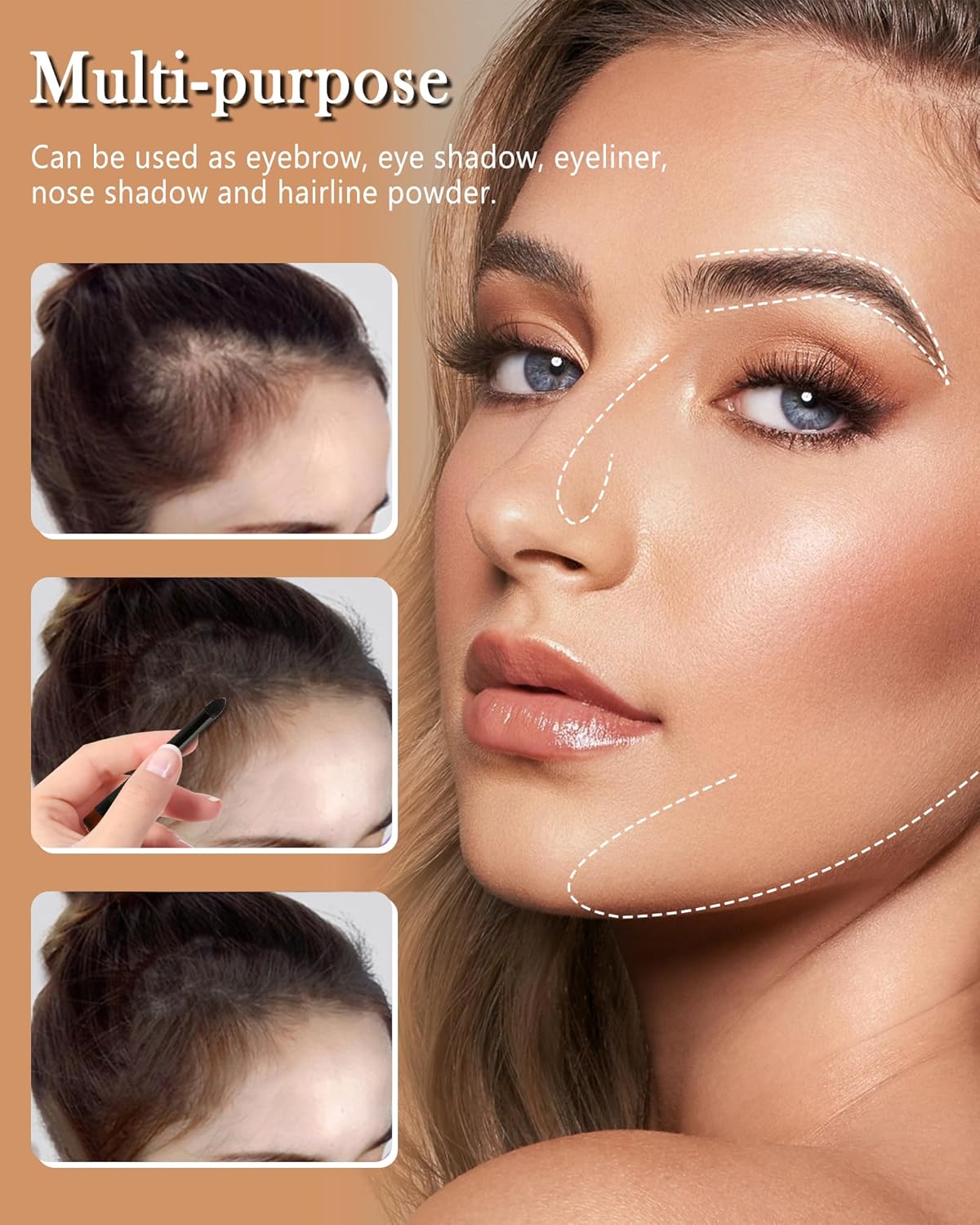 - Multiple Use - In addition to filling in and shaping brows and covering blemishes on them, this amazing brow powder also contours the face, as well as fills in the hairline to cover a thinning hairline, and can be used as an eyeshadow to naturally enlarge the eyes. The eyebrow makeup kit suitable for different occasions, perfect for party makeup, casual makeup, wedding makeup, etc. And the best present for families and friends.