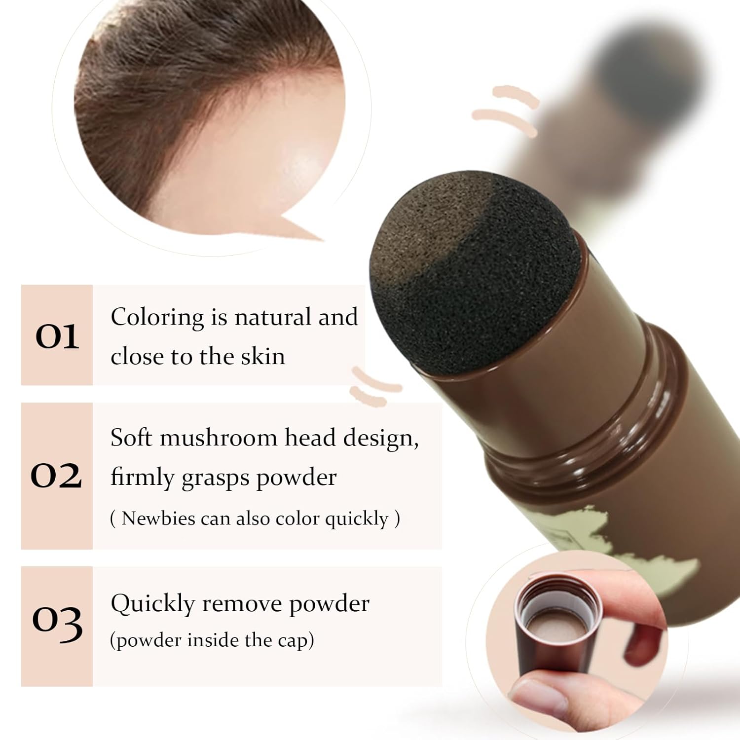 • 【Instant Coverage】Use a powder puff to cover sparse areas and hair loss, matching natural hair color for a fuller look.
