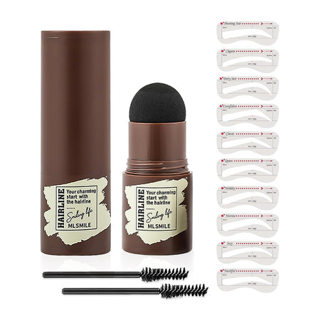 Eyebrow Stamp & Hairline Powder, 2-IN-1 Reusable Stencils Fiber Powder Stick for Thin Brows and Edges, Eyebrow Stamp Vegan Smudge Proof Formula, Eyebrow Kit Beginner Friendly #gray brown
