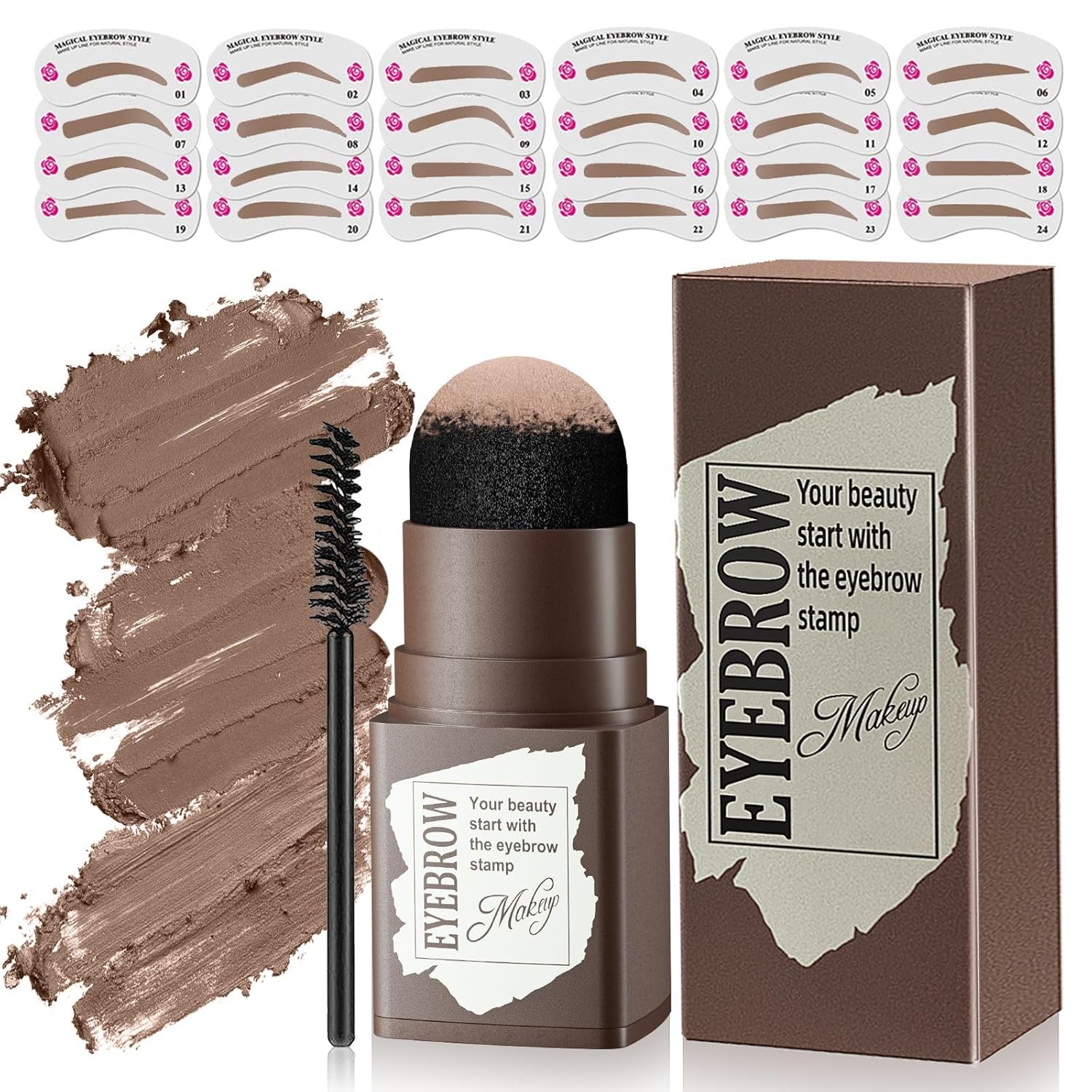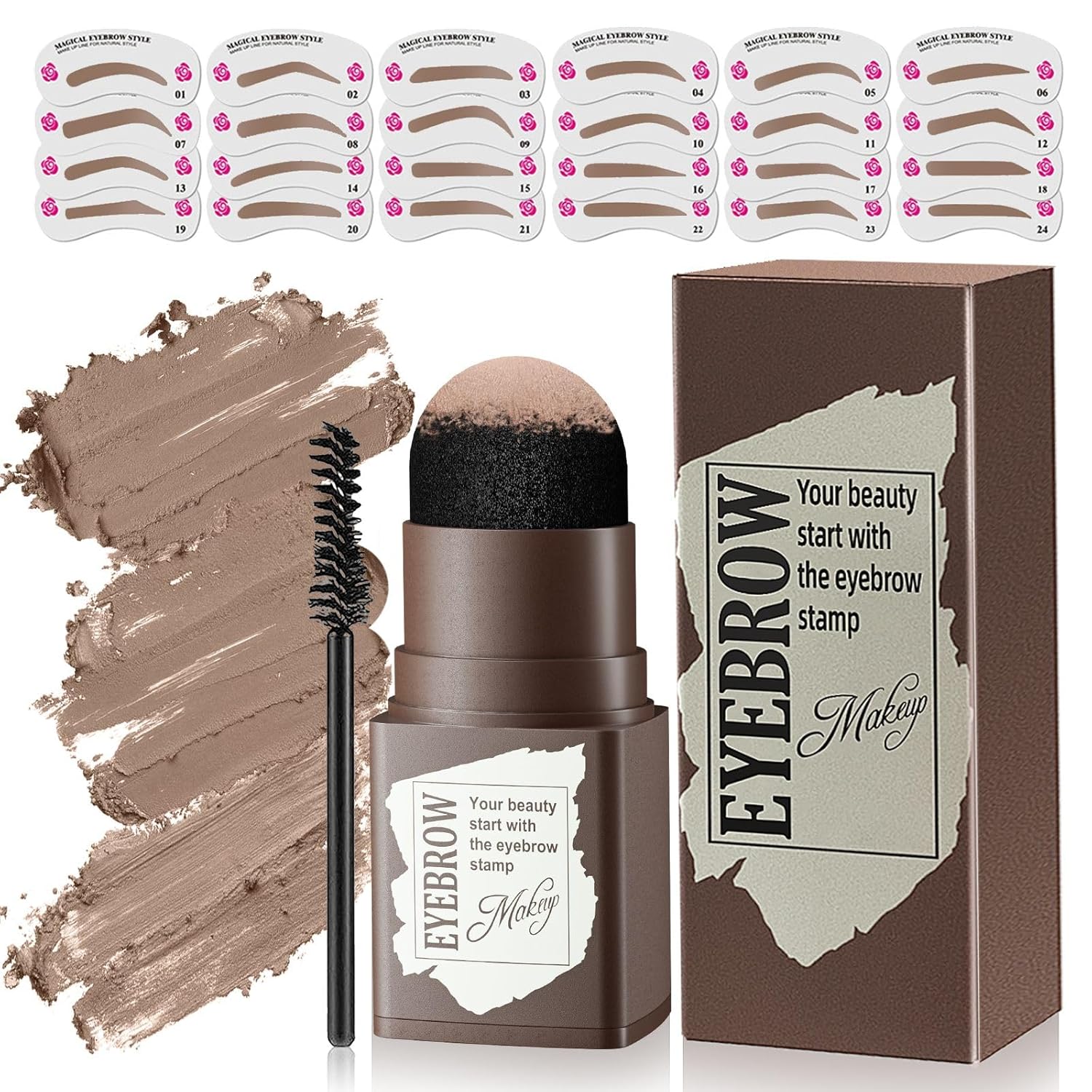 Eyebrow Stamp Stencil Kit - 24PCS Eyebrow Stencils for Perfect Brow, Eyebrow Stamp Long-lasting Waterproof & Smudge-Proof, Eyebrow Kit with Eyebrow Brush for Thin & Thick Brow (Light Brown)