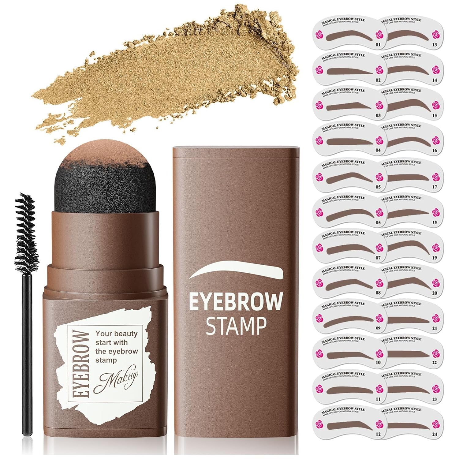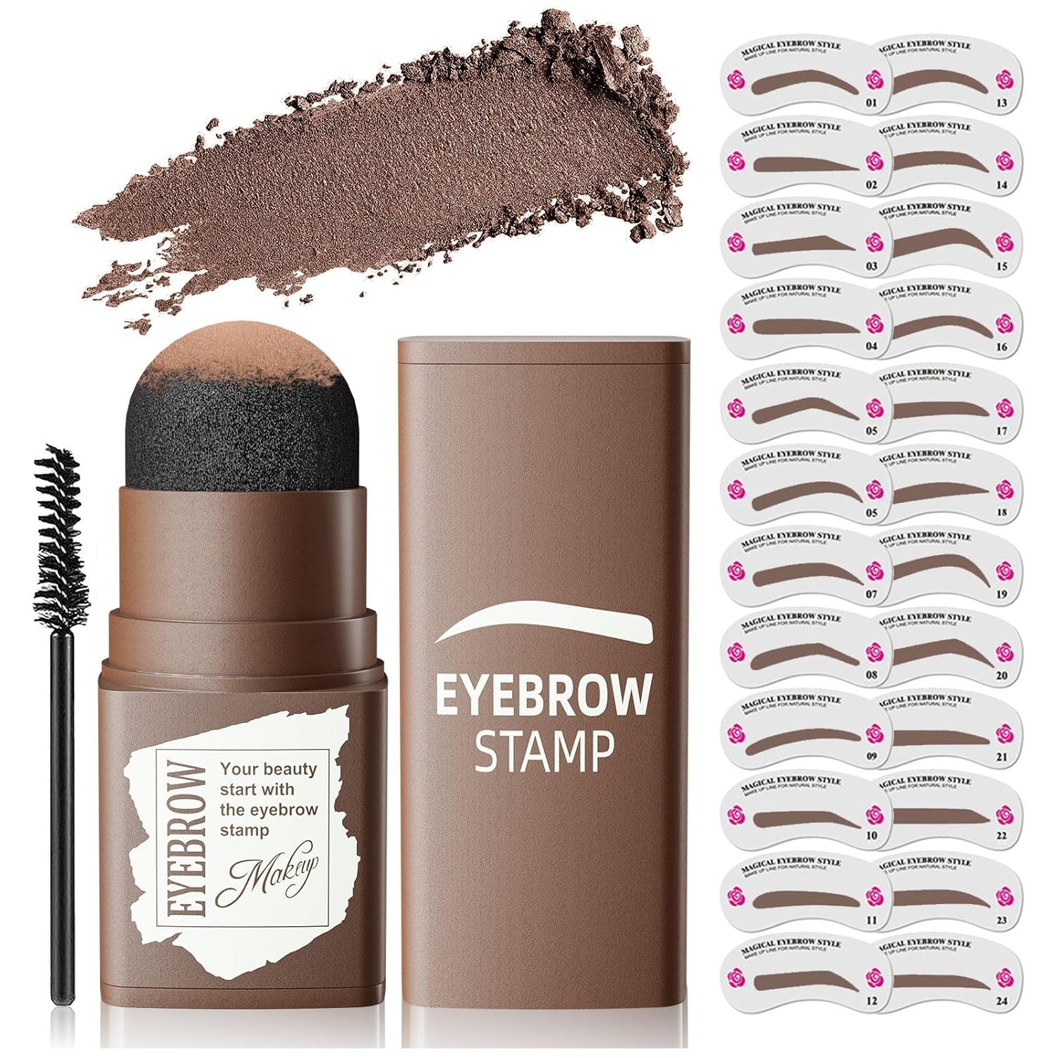 Eyebrow Stamp Stencil Kit - Eye Brow Stencil Kit for Beginners, Brow Stencil and Stamp Kit Long-lasting, Smudge-Proof & Waterproof, 24 Reusable Eyebrow Shapes Stencils for Perfect Brow (Medium)