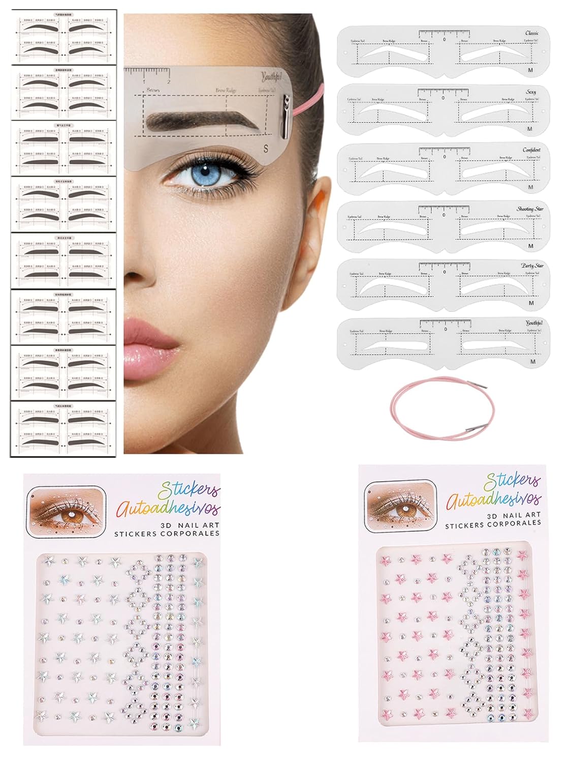 Eyebrow Stencils Kit 34 Pieces Eyebrow Shaping Tool Eyebrow Grooming Kit, Includes 2 Sheets Self Adhesive Face Gems (34in kit)