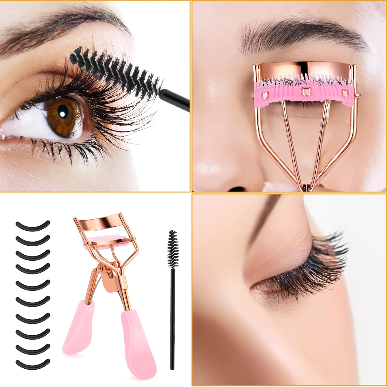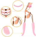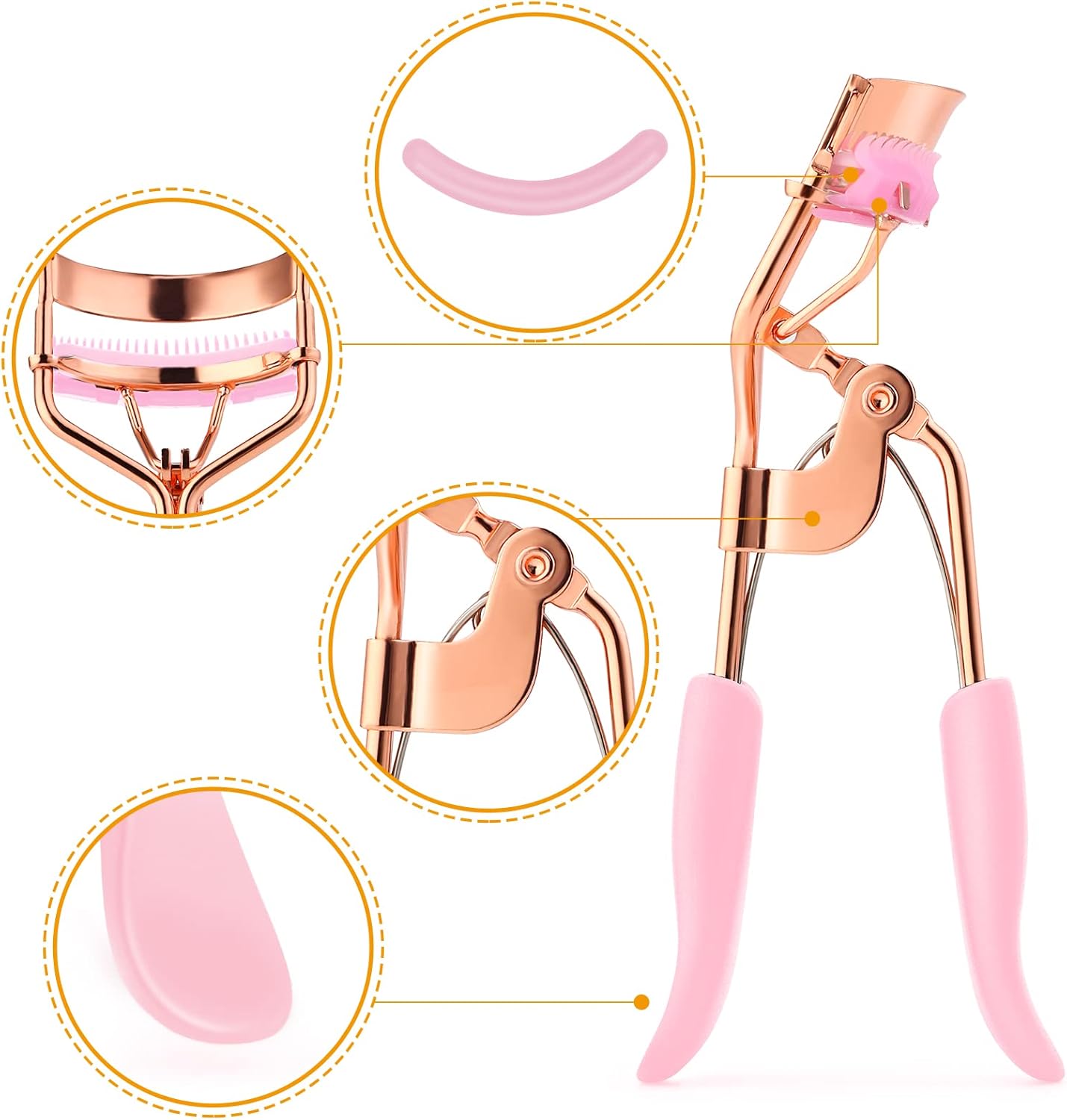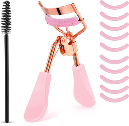Eyelash Curler Kit Metal Eye Lashes Curler,Professional Makeup Tool with Built-in Comb Eye with 10 Replacement Refill Pads Get Dramatically Curled Eyelashes for Women Girl (Pink)