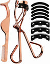 • QUALITY EYELASH CURLER: Highly elastic rubber refills and precision ground off edge combs. Will not cut off and ripped out eyelashes.