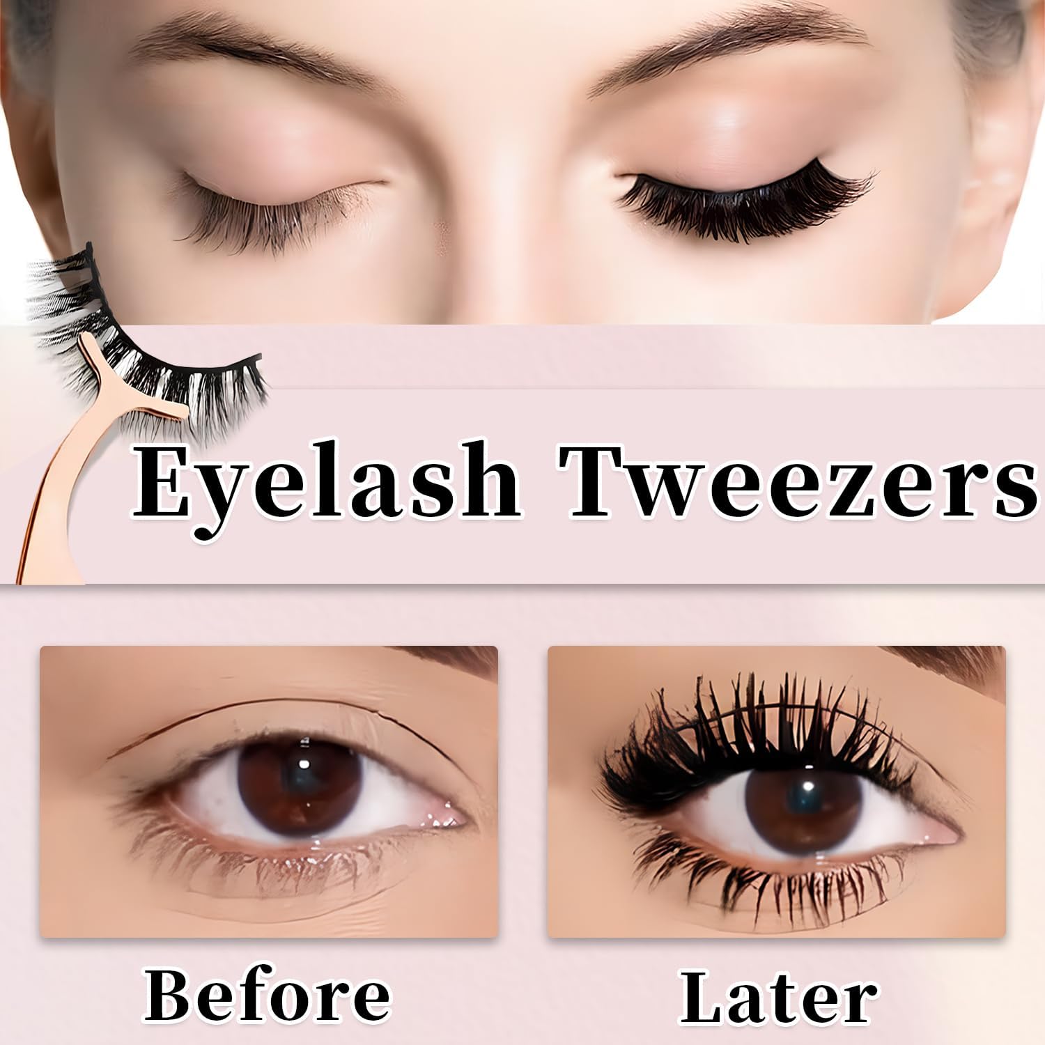 Eyelashes Applicator Tool,Lash Tweezers Stainless Steel for Wearing and Removing Eyelashes (2 PCS)