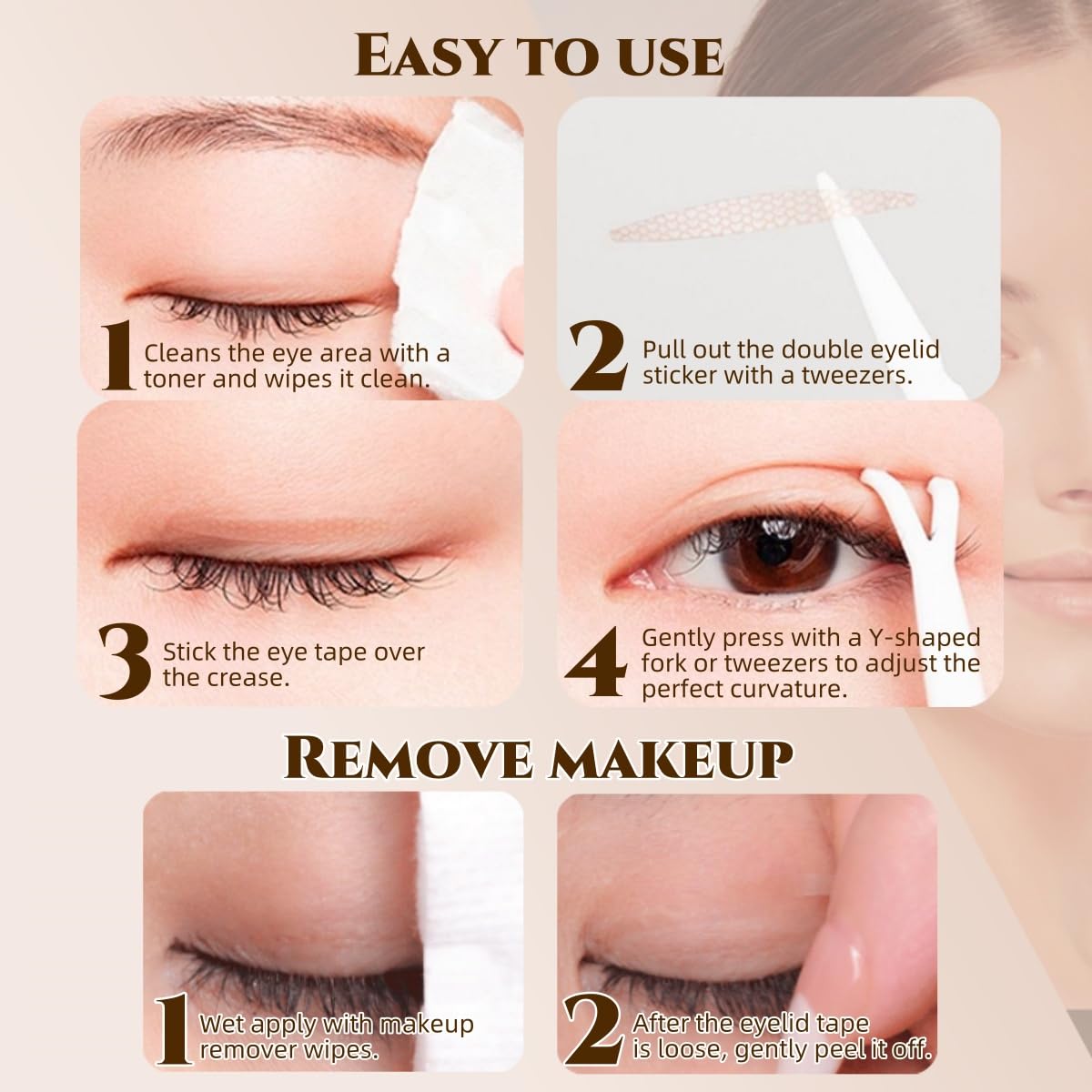 You can face a busy day with confidence because this product stays on your eyelids, ensuring your makeup remains flawless. Easily create natural eyelids and make your eyes look rounder and larger. It won't affect your daily makeup, but it can help your eyes look more natural and shiny. The eyelid tape is exquisite and convenient to carry out, and the roll inside can also be replaced.Perfect for putting in makeup bags or handbags. suitable for ADJUSTING THE SHAPE OF YOUR DOUBLE EYELIDS suitable for SINGLE EYELID INNER-DOUBLE EYELID DROOPY EYELID suitable for SINGLE EYELID INNER-DOUBLE EYELID DROOPY EYELID HOODED EYELID LOOSE or THICK EYELID