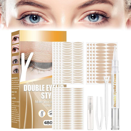 - 【PACKAGE INCLUDED】Eyelid stickers have 3 sizes. 480PCS double eyelid stickers, 1 eyelid styling cream, 1 Y fork rod, 1 tweezer, 1 empty spray bottle, enough and convenient for your daily use. Different sizes of lid tape give different widths of double lid, creating a deep and natural double lid.
