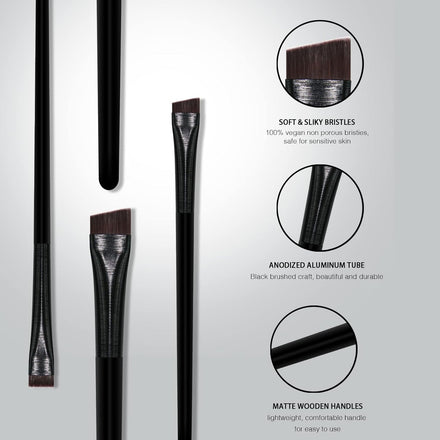 • ✨PROFESSIONAL EYELINER BRUSH -- Brow brushes for eyebrows kit meets different needs. Two professional grade angled eyeliner brushes are for shaping, defining eyebrows and eyeliner. One angled eyeliner brush is for grooming and shaping. The different widths of angled eyeliner brush and flat makeup brush, ultra-thin shape like a blade, help you to create the finest and most precise lines, even in the tightest, smallest, and hard to reach areas of your eyes or lashes.