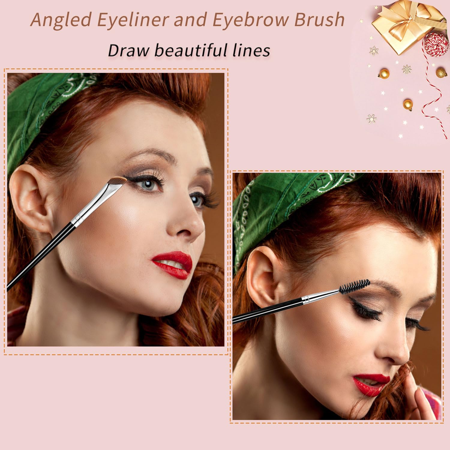 - New Upgraded Eyeliner Brushes: New upgraded sickle eyeliner brush, angled eyeliner, concealer brush and eyebrow brush, suitable for expert or beginner artists. Silky bristles and slim brush head makes it easy to draw smooth liner.