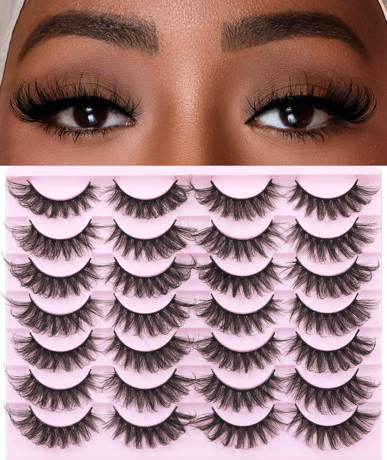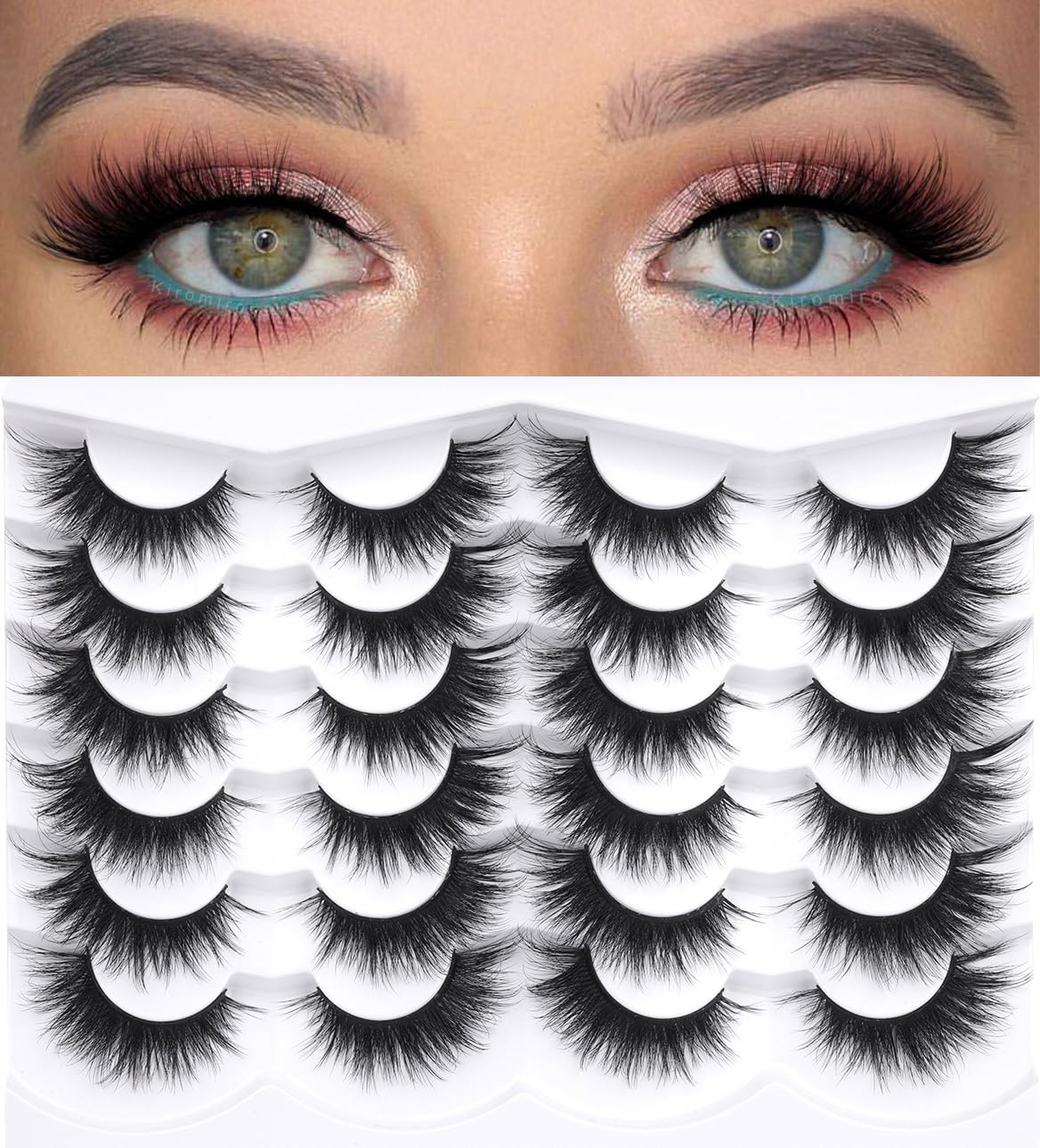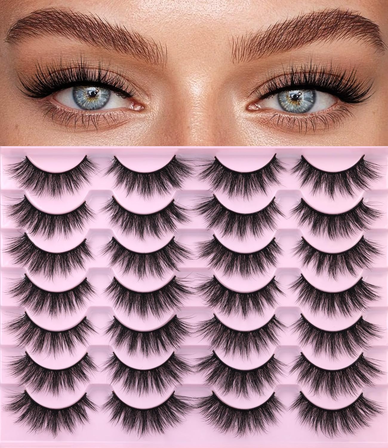 False Eyelashes 14mm Faux 3D Mink Lashes Natural Look Cat Eye Wispy Lashes Pack by Kiromiro, 14 Pairs