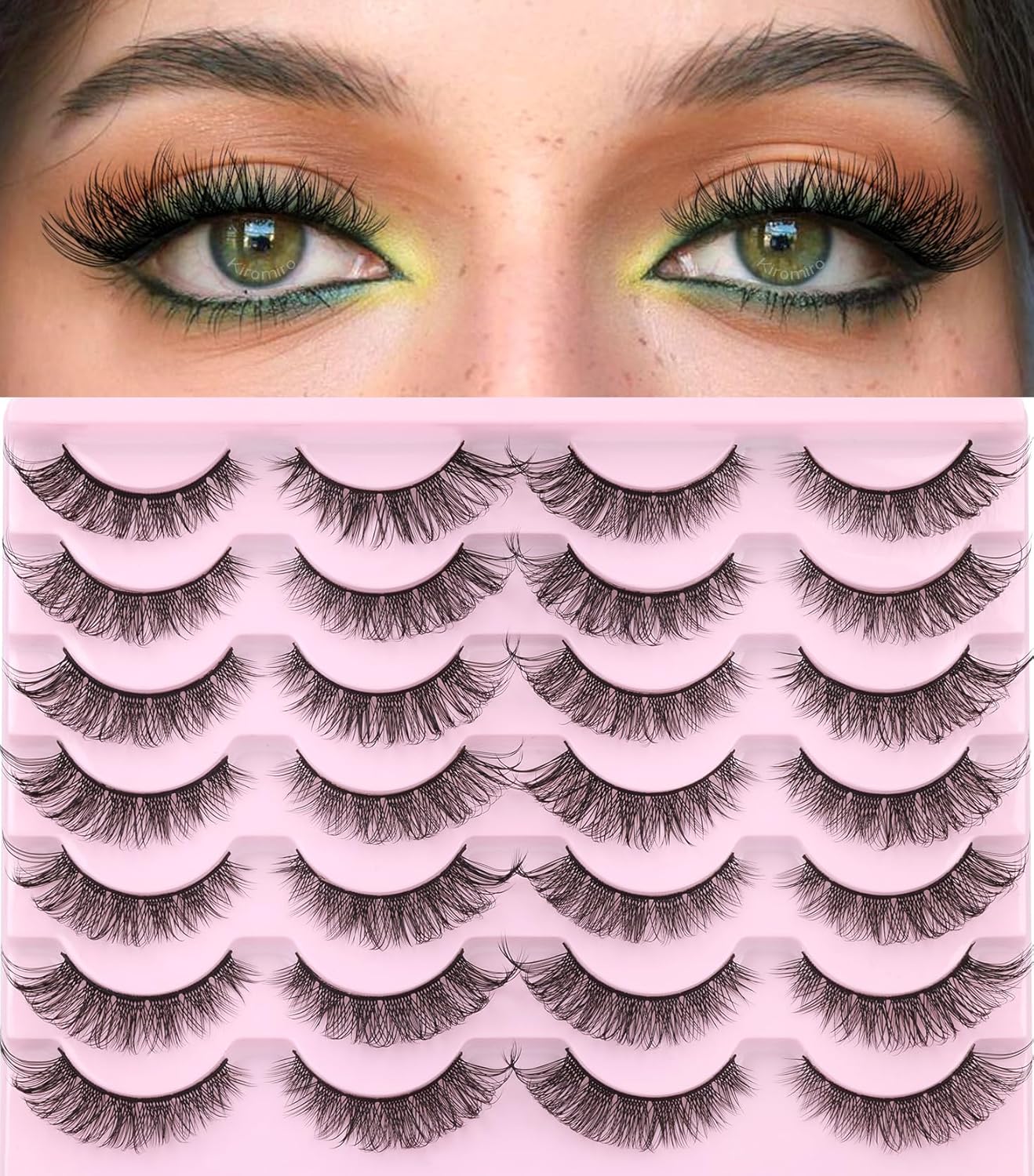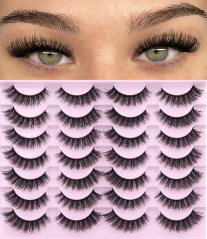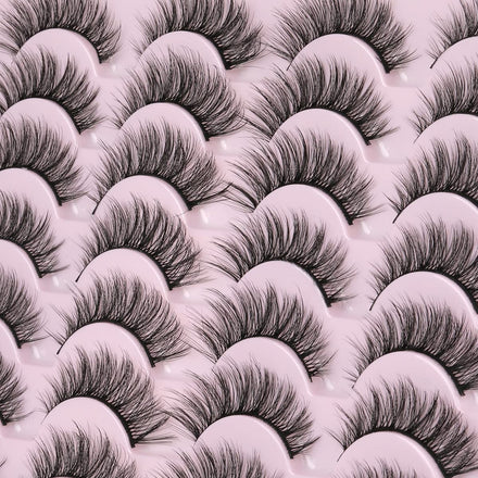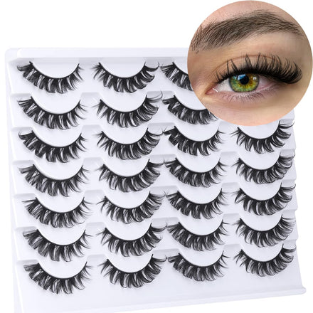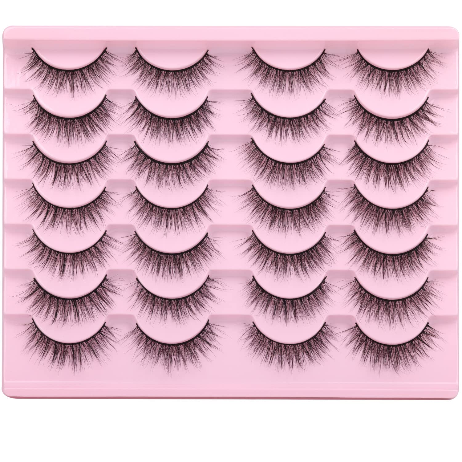 False Eyelashes 14mm Faux 3D Mink Lashes Natural Look Cat Eye Wispy Lashes Pack by Kiromiro, 14 Pairs