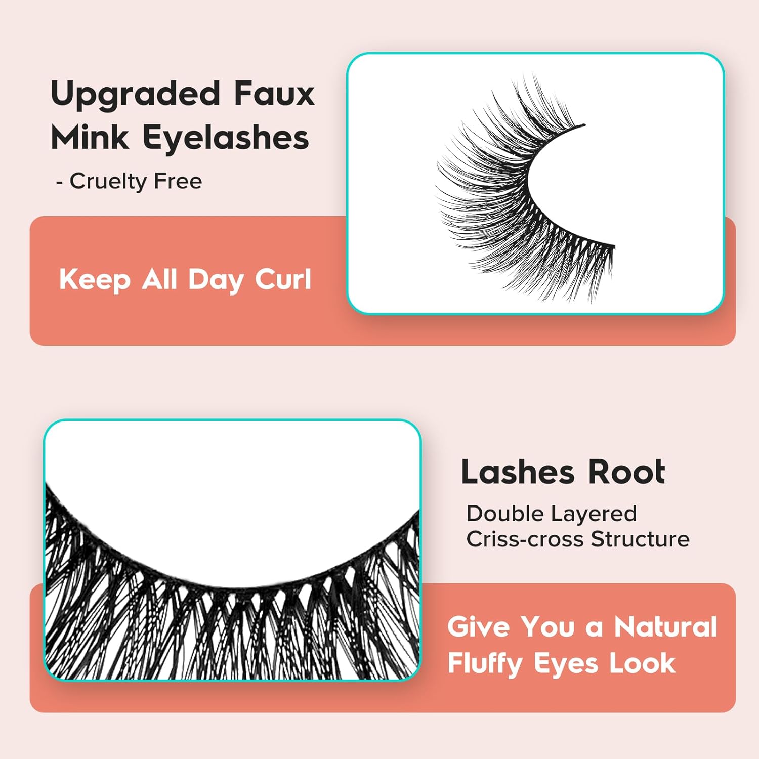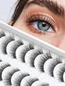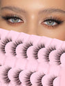 - VEGAN & REUSABLE: 10 pairs lash pack. The fake eyelashes use ultra-light faux mink fibers, cruelty-free, skin friendly. Bring pretty lashes extension look without damaging your own eyelashes, suit for DAY-TO-DAY use, party and so on