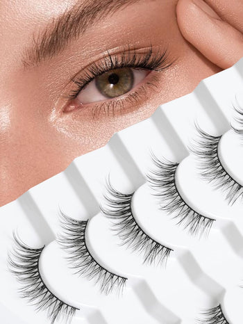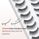 - THIN BAND FALSE EYELASHES: The wispy eyelashes use 0.1mm thin cotton flat band tech, seamlessly blend to your real eye lashes. Incredibly flexible, easy to bend and stay well on, beginner friendly