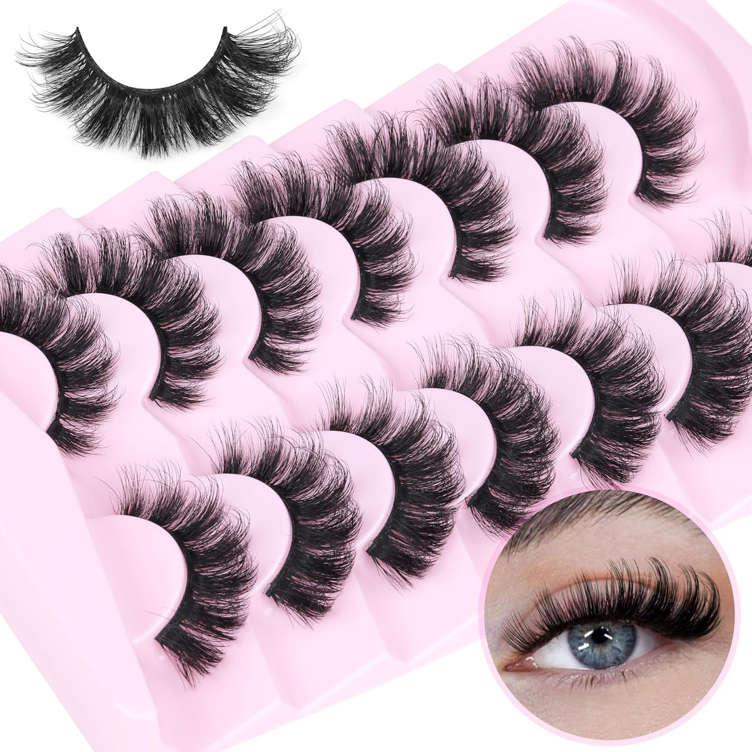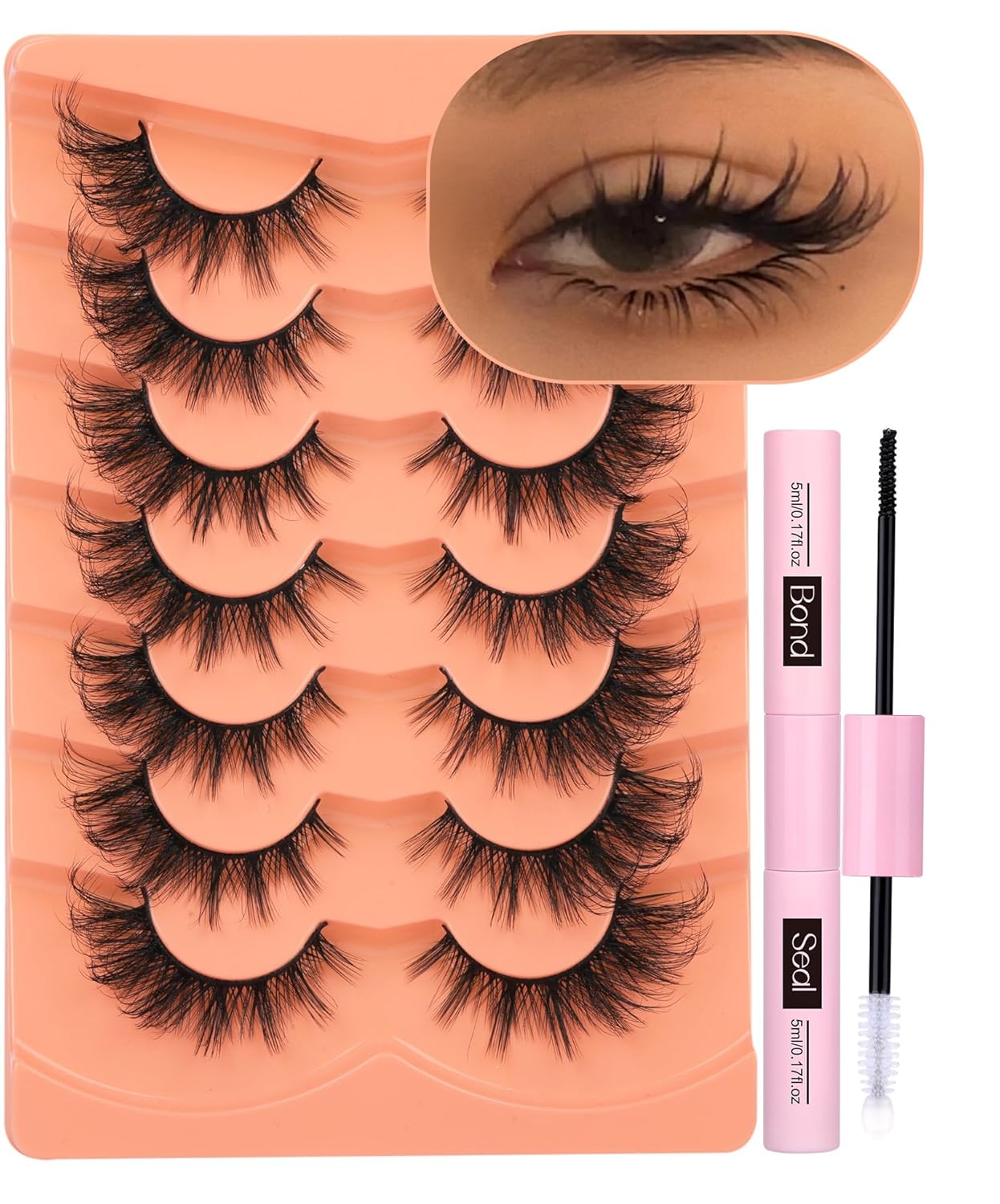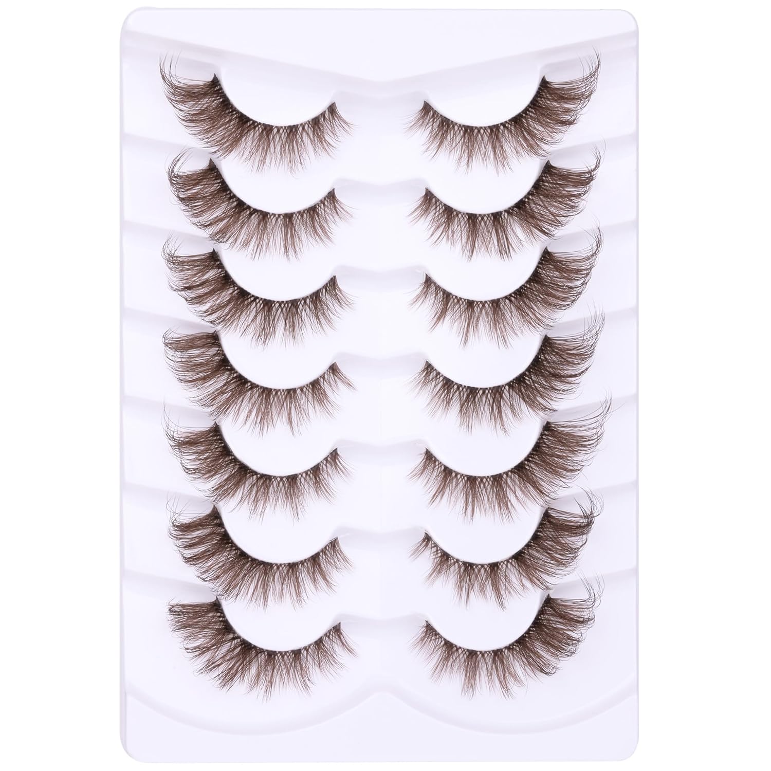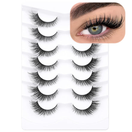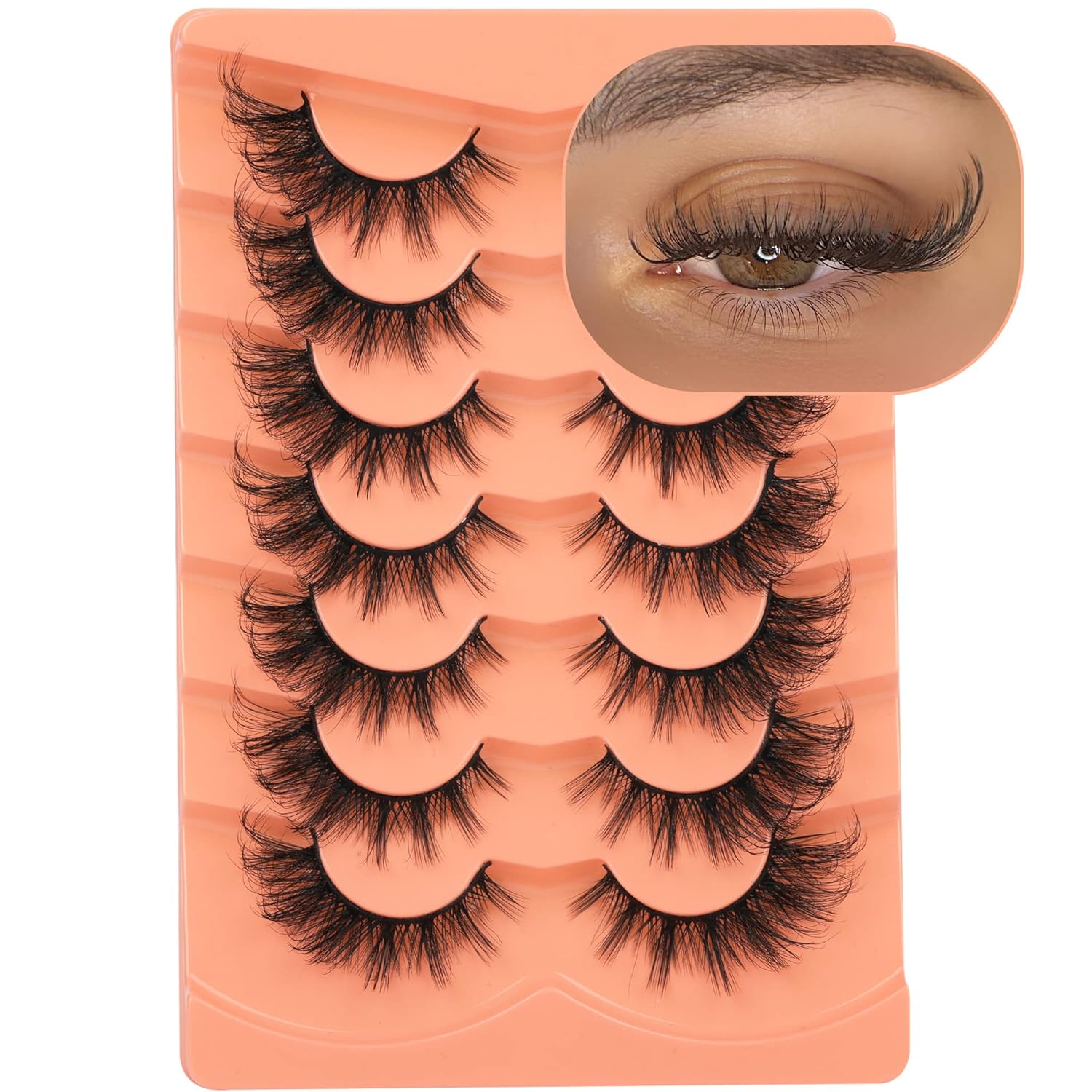 False Eyelashes Wispy Lashes Natural Look Fake Eyelashes Cat Eye Lashes Mink Fluffy Strip False Lashes Fox Eye Lashes Pack 7 Pairs ALICROWN