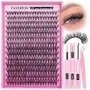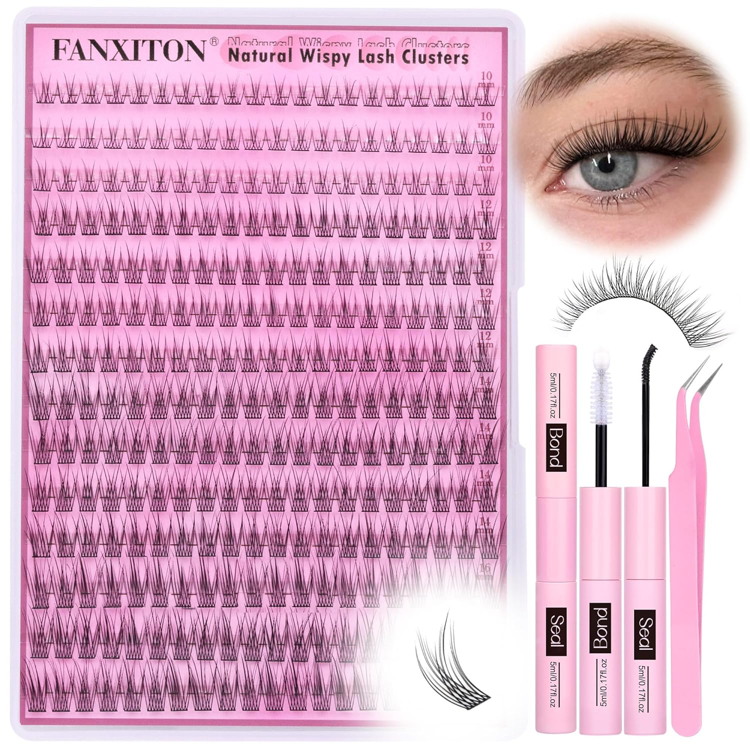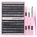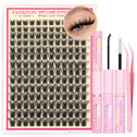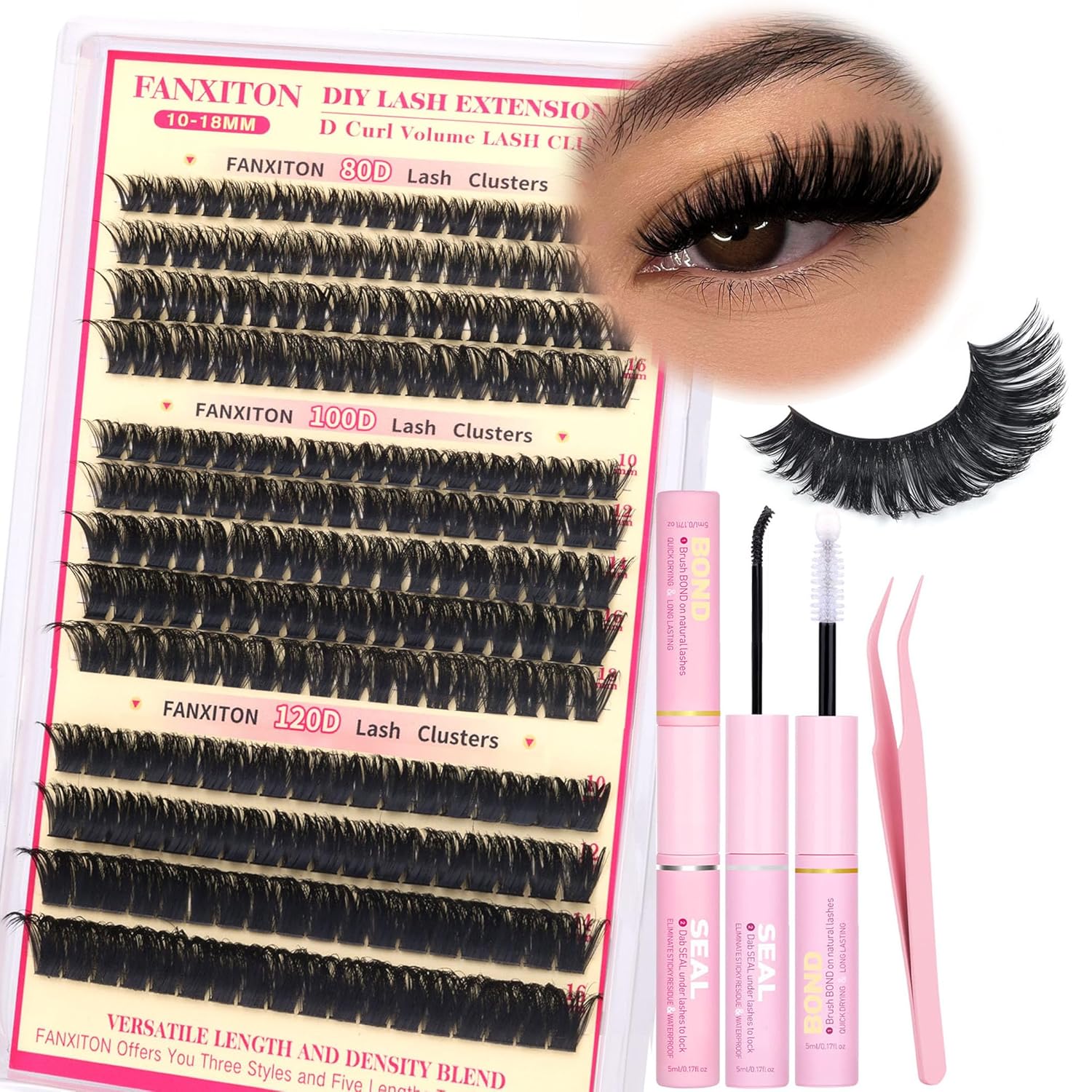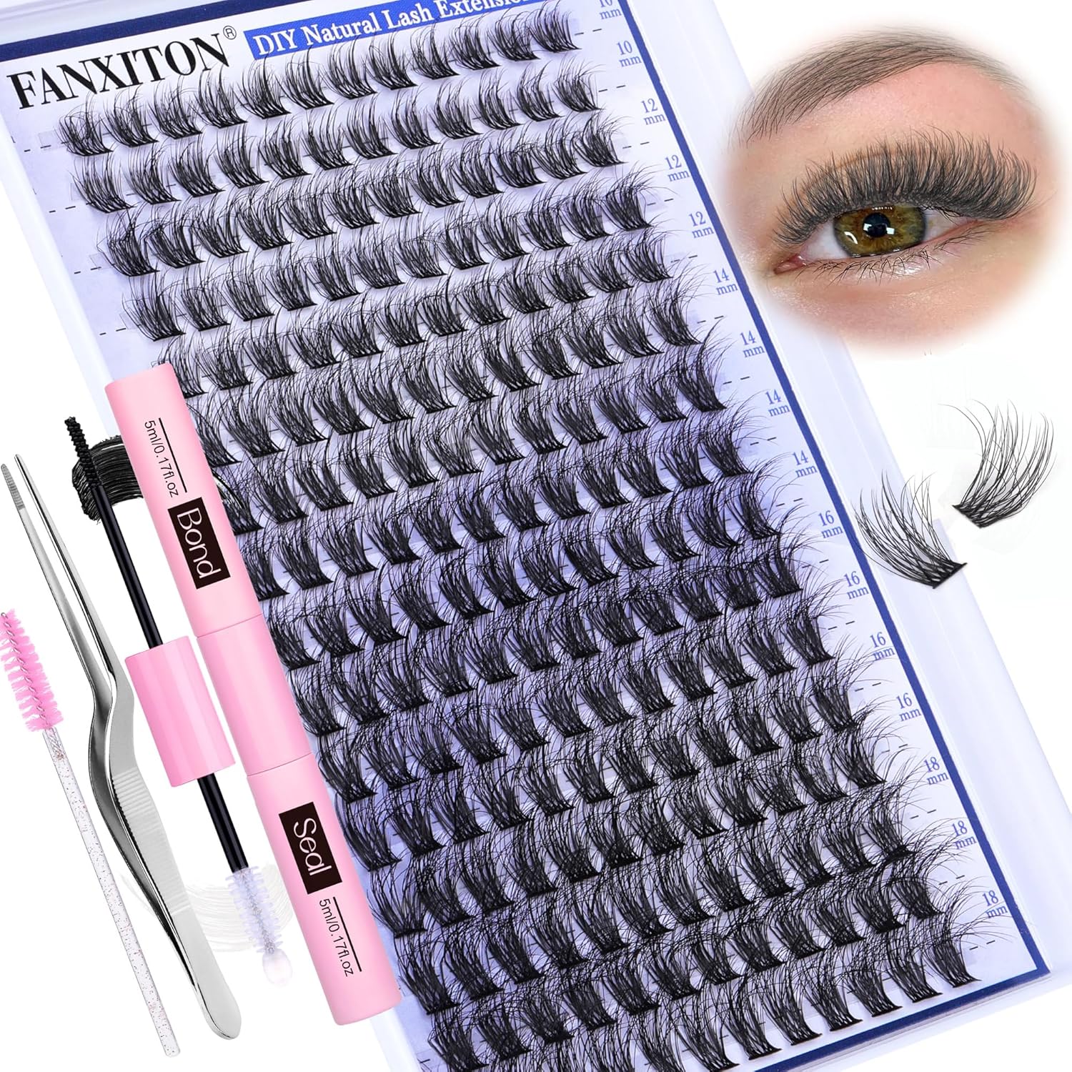 FANXITON DIY Lash Extension Kit Volume Lash Clusters 40D+50D D Curvature Individual Lashes Lash Clusters Kit Thick Eyelash Extension Kit 280 pcs Thin Band Cluster Lashes Lash Bond and Seal Tweezers